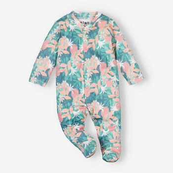 Miętowe półśpiochy niemowlęce Wonderful Flowers z bawełny organicznej dla dziewczynki