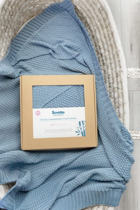 Otulacz bambusowy / kocyk z kapturem Sensillo - Niebieski