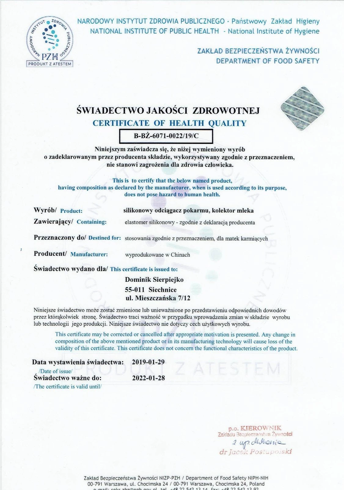 Produkt jest wykonany z bezpiecznych i atestowanych materiałów - to silikon spożywczy, który jest wolny od BPA. Oryginalny kolektor marki MAMI to wysokiej jakości produkt - jest przebadany laboratoryjnie, posiada atest PZH i certyfikaty bezpieczeństwa. Świadczy to o 100% bezpieczeństwie zarówno dla dziecka jak i dla mamy.