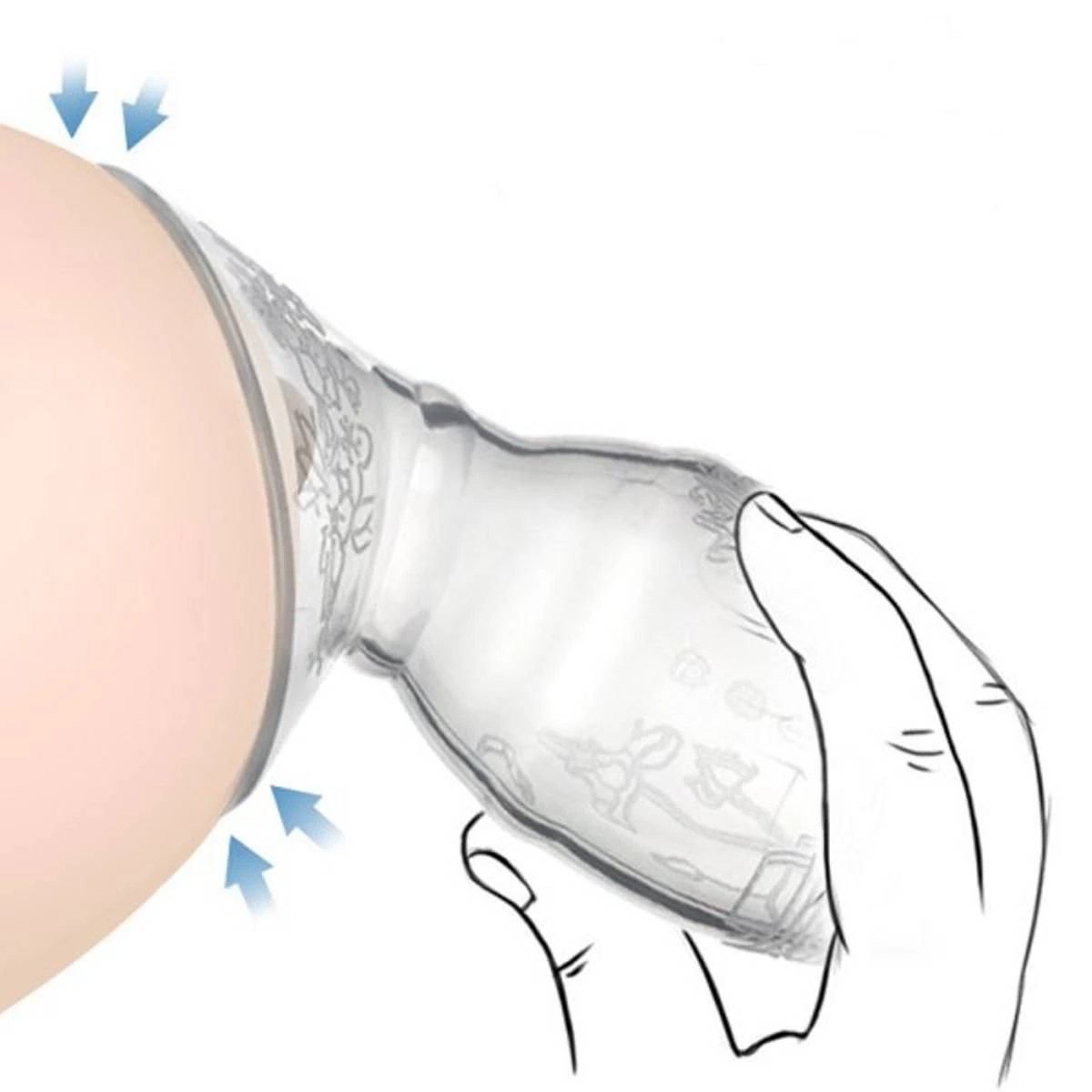 - Jeżeli będzie taka potrzeba,ponownie ściśnij dolną część odciągacza, aby wzmocnić wypływ mleka.