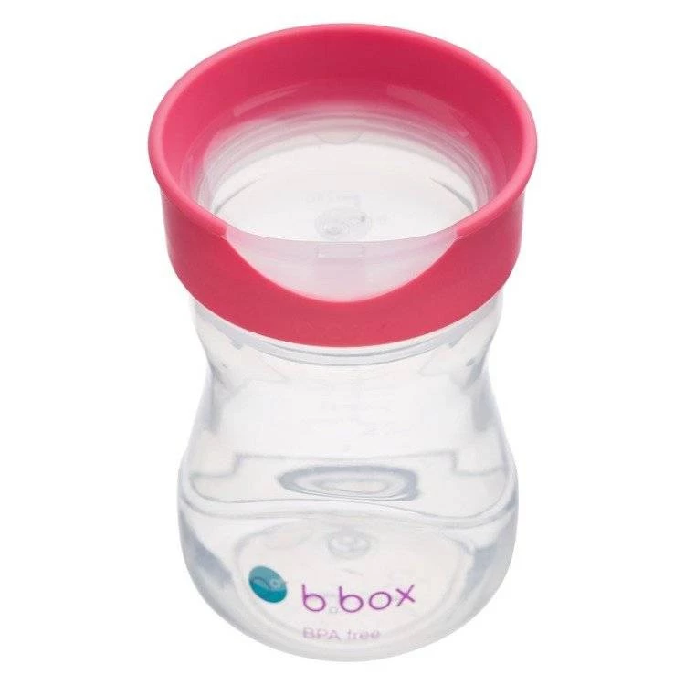 Ten różowy kubek treningowy, to nowy członek rodziny innowacyjnych akcesoriów b.box. Zaprojektowany po to by ułatwić twojemu dziecku przejście od niekapka do zwykłego kubka. Umożliwi zdobycie nowej umiejętności bez wywoływania potopu przy każdej próbie. Pokrywka pozwala pić jak ze szklanki jednocześnie zapobiegając nadmiernemu rozlewaniu płynu przy przechyleniu kubeczka. Dzięki temu, że jest przezroczysta dziecko widzi napój i może oceniać jak bardzo nachylić kubeczek.
