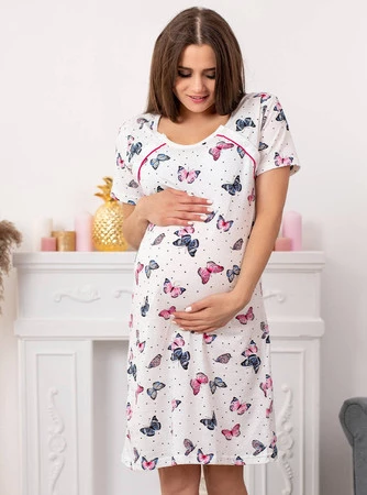 Wybierając ubrania ciążowe i koszule do porodu które ułatwią Ci karmienie piersią postaw na koszulę do karmienia którą dziś przedstawiamy. Biała koszula w śliczne motylki z zapięciem na guziki z dwóch stron klatki piersiowej to praktyczne rozwiązanie kiedy chcesz zapewnić sobie i dziecku szybki dostęp do piersi. Wybierając tego typu modele koszuli do karmienia masz pewność że dyskretnie nakarmisz noworodka w każdej chwili.