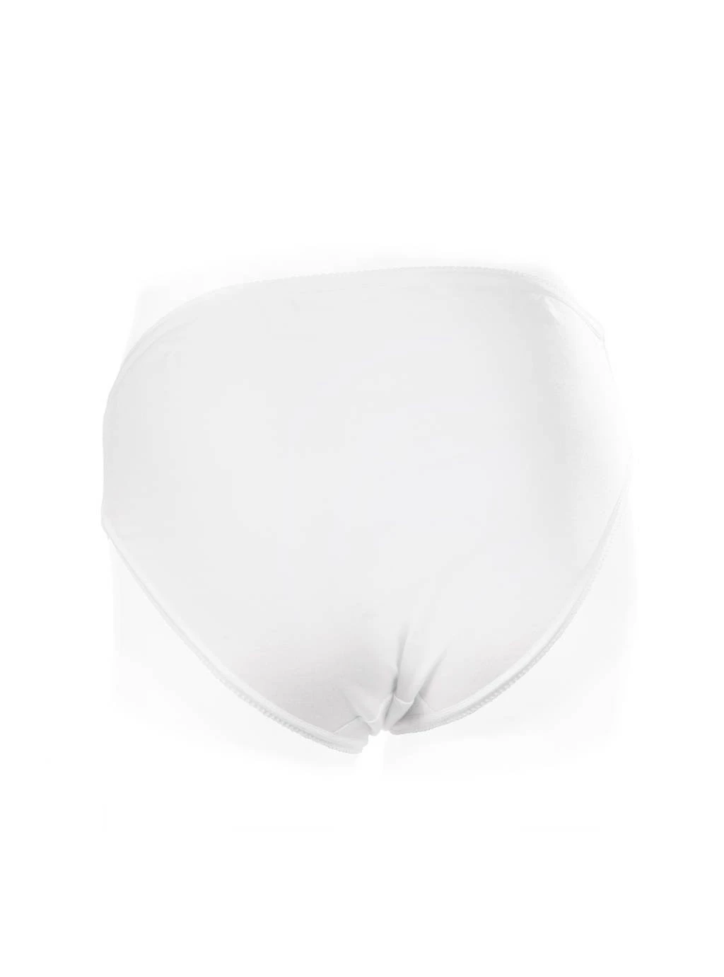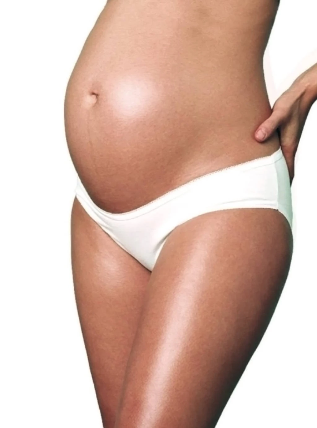 Białe figi pod brzuch wykonane z delikatnej, bawełnianej tkaniny, która nie podrażnia skóry. Są miękkie i elastyczne, dzięki czemu dopasowują się do wielkości rosnącego brzuszka, zapobiegając przy tym nadmiernemu uciskaniu. Specjalny fason sprawia, że majtki są wygodne w noszeniu na każdym etapie ciąży. Figi wykonane zostały z delikatnej, bawełnianej tkaniny, która nie podrażnia skóry