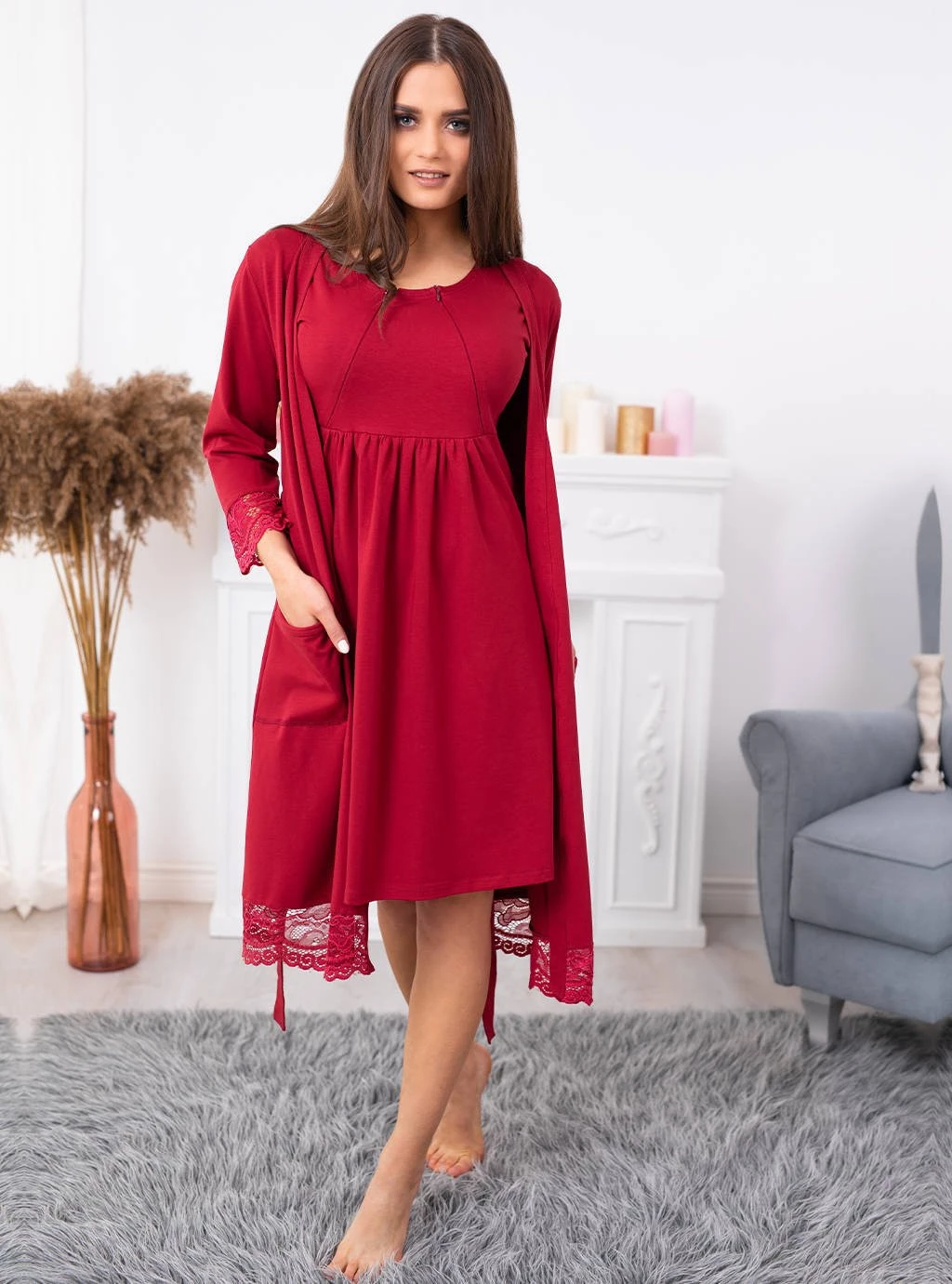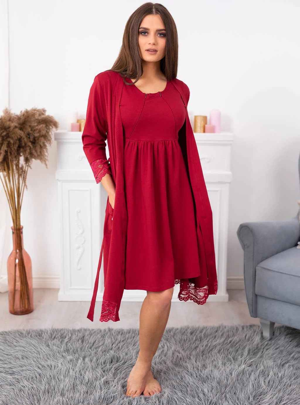 Oglądając eleganckie koszule ciążowe w naszym sklepie internetowym przyszła mama ma wyjątkowo duży wybór. Koszule nocne, koszule do porodu i karmienia piersią to spora ilość wzorów i modeli, które zapewnią wygodę jej w ciąży i szybki dostęp do piersi kiedy dziecko jest już na świecie. Modele które zebraliśmy w naszej ofercie dla wygody mamy i dziecka. Przedstawiany produkt Bella to atrakcyjnie uszyta piękna koszula z rękawkiem z delikatnej koronki wszystko w kolorze Bordo.