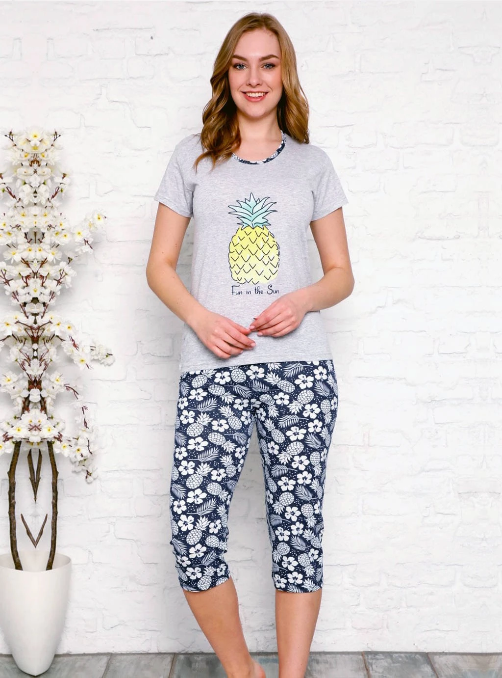 Piżama wykonana z 100% bawełny , góra z krótkim rękawkiem i ozdobiona printem,