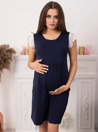 Kiedyś koszula ciążowa była niepotrzebnym wydatkiem teraz to inwestycja w komfort i pewność siebie. Koszule do porodu i karmienia w serii Bella to wyjątkowo eleganckie rozwiązanie i najlepsza przewiewna bawełna. Bella granatowa wykończona białym koronkowym rękawkiem, sprawi że będziesz wyglądać atrakcyjnie podczas ciąży. Bella to również rozwiązanie które zapewni Tobie i maluszkowi wygodę podczas karmienia piersią. k Granatowa koszula Bella do karmienia rozpinana jest z dwóch stron piersi dzięki czemu bez problemu nakarmisz noworodka.