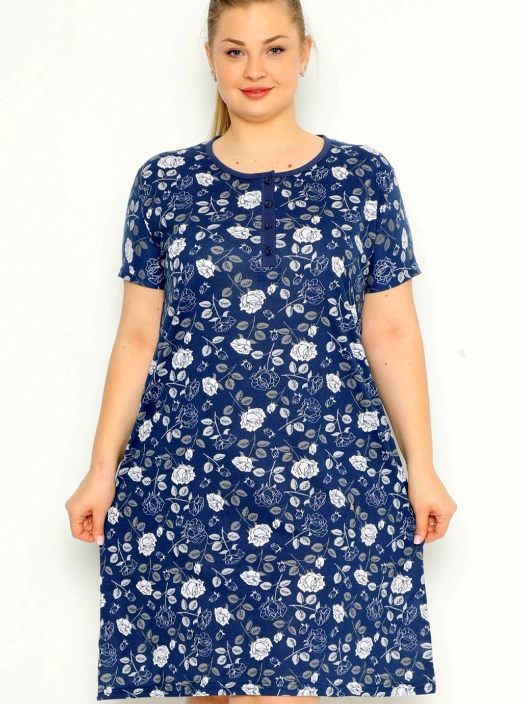 Koszula ciążowa Białe róże - granatowa