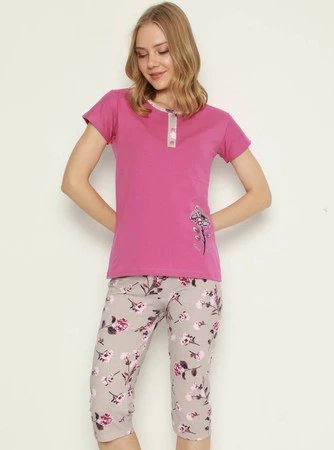 Piżama wykonana z 100% bawełny , góra z krótkim rękawkiem i ozdobiona printem,