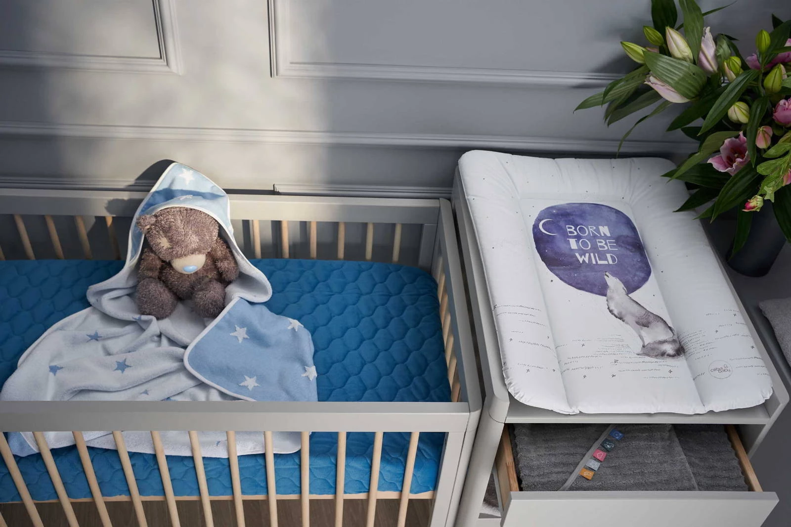 Elegancki przewijak z wilkiem to kolejna trafiona w 10 propozycja od Ceba Baby. Przewijak miękki przyda się wszędzie tam gdzie chcesz przewinąć dziecko bez względu na wybór miejsca. Zapewnij Sobie i maluchowi stabilność, wygodę oraz higienę podczas przewijania pieluszki wybierając miękki przewijak, który bez trudu pomoże Ci przewinąć noworodka zawsze kiedy zajdzie taka konieczność. Komoda lub szafka bez specjalnej półki, albo też połóż wygodnie malucha na innej powierzchni np. na kanapie i z łatwością zmień mu pieluszki.