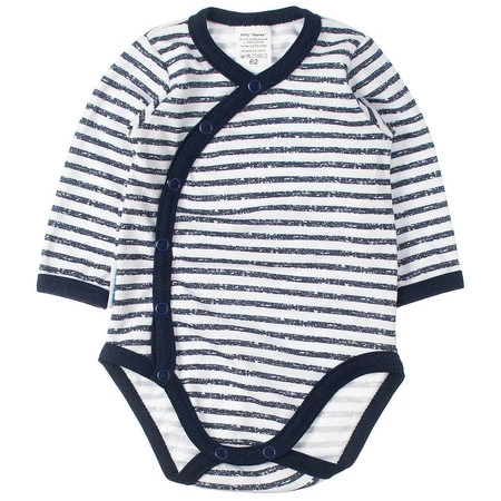 Wygodne body dla niemowląt, bezpieczne dla skóry maluszka to oferta obok której żadna przyszła mama nie powinna przejść obojętnie. Body dziecięce w w granatowe paski to idealna propozycja dla małych dziewczynek i chłopców. Doskonałe w każdej sytuacji dla niemowlaków w czasie snu jak i spaceru. Body cieszy się dużą popularnością wśród naszych klientek ponieważ to body z długim rękawem jest praktyczne a zarazem komfortowe. A jeśli szukasz innego body np. z krótkim rękawem polecamy też ubranka niemowlęce z najwyższej jakości bawełny organicznej również dostępne w naszej ofercie.