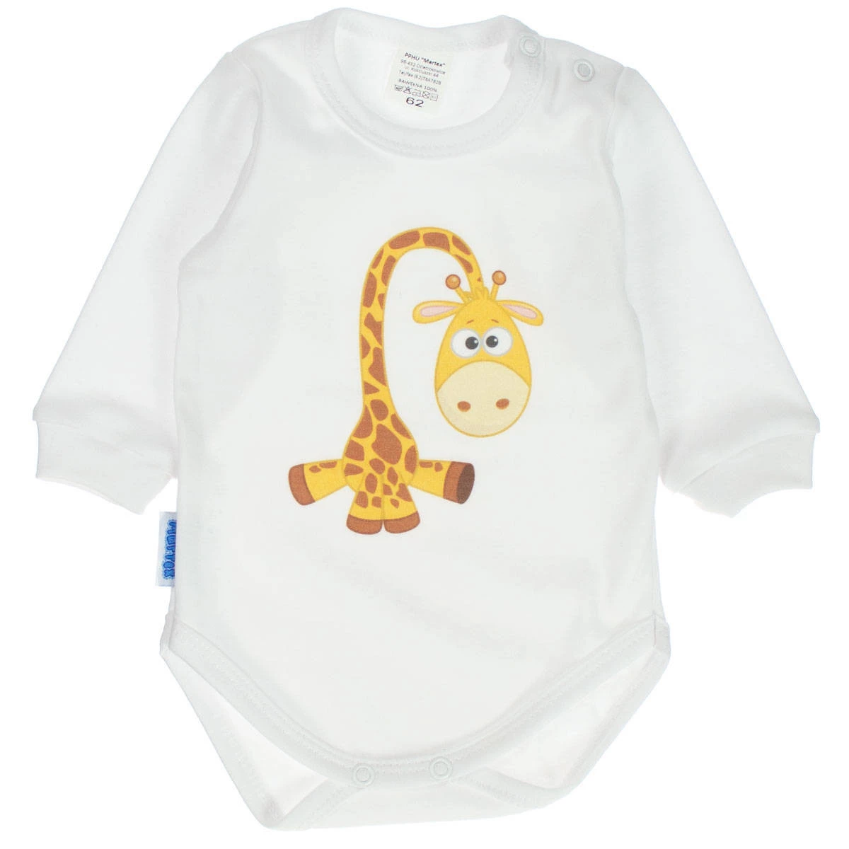 Wybierz body niemowlęce z miłej w dotyku bawełny z śliczną żyrafką. Klasyczne body niemowlęce i bezpieczne dla skóry skłonnej do podrażnień i alergii. Zwróć swoją uwagę na bezniklowe napy w kroku ułatwiające ubieranie maluszka kiedy zajdzie taka potrzeba. Body niemowlęce wykonane z bawełny idealnie sprawdza się dla delikatnej skóry dziecka - skóry alergicznej. Wysoka jakość bawełny sprawia że ubranka niemowlęce jak klasyczne bawełniane body są niezastąpione w szafie Twojej Pociechy.