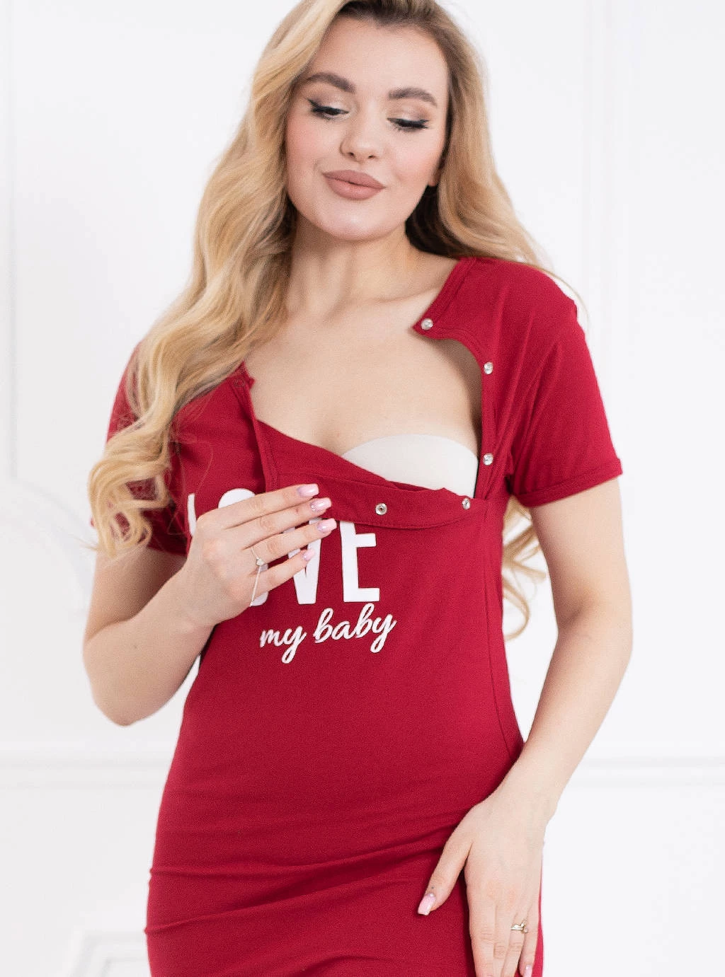 Love my baby - bordowa to koszula karmienia rozpinana po obu stronach klatki piersiowej. Masz pewność jako młoda mama że to atrakcyjnie dobrane rozwiązanie które zapewni Ci komfort karmienia i wyjątkowo miękka bawełna dostosuje się do rosnącego brzuszka jeszcze przed rozwiązaniem.
