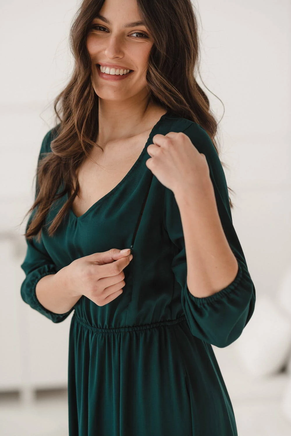 Niezwykła sukienka dla ciężarnych i świeżo upieczonych mam to kwintesencja kobiecości i dobrego stylu.Okres karmienia piersią w naszych sukienkach dla karmiących mam może być prosty i wygodny, jeśli zainwestujesz w tę niebanalną sukienkę na czas ciąży, która dzięki innowacyjnym, ukrytym zamkom pozwoli Ci korzystać z niej przez wiele lat jako zwykłej sukienki. Sukienki do karmienia piersią w odcieniach zieleni pasują na każdą okazję i porę roku. Wystarczy odpowiednio dobrać dodatki do Twojej sukienki ciążowej, aby stworzyć wyjątkowy outfit, który zachwyci nawet najbardziej wymagające kobiety.