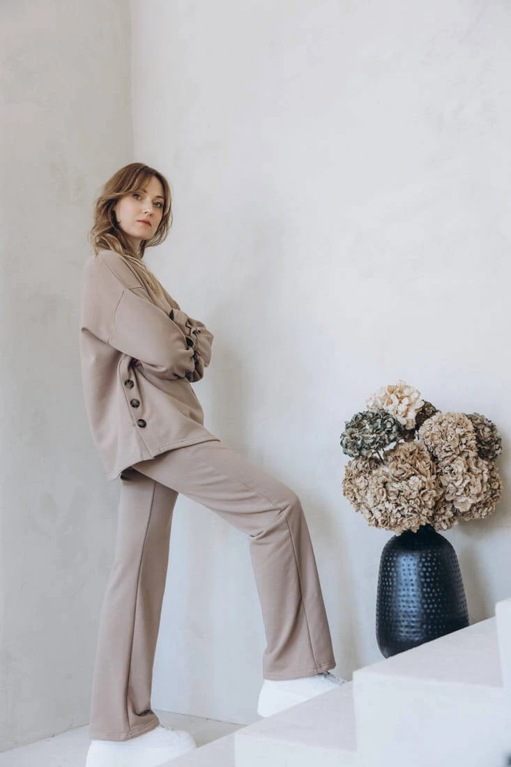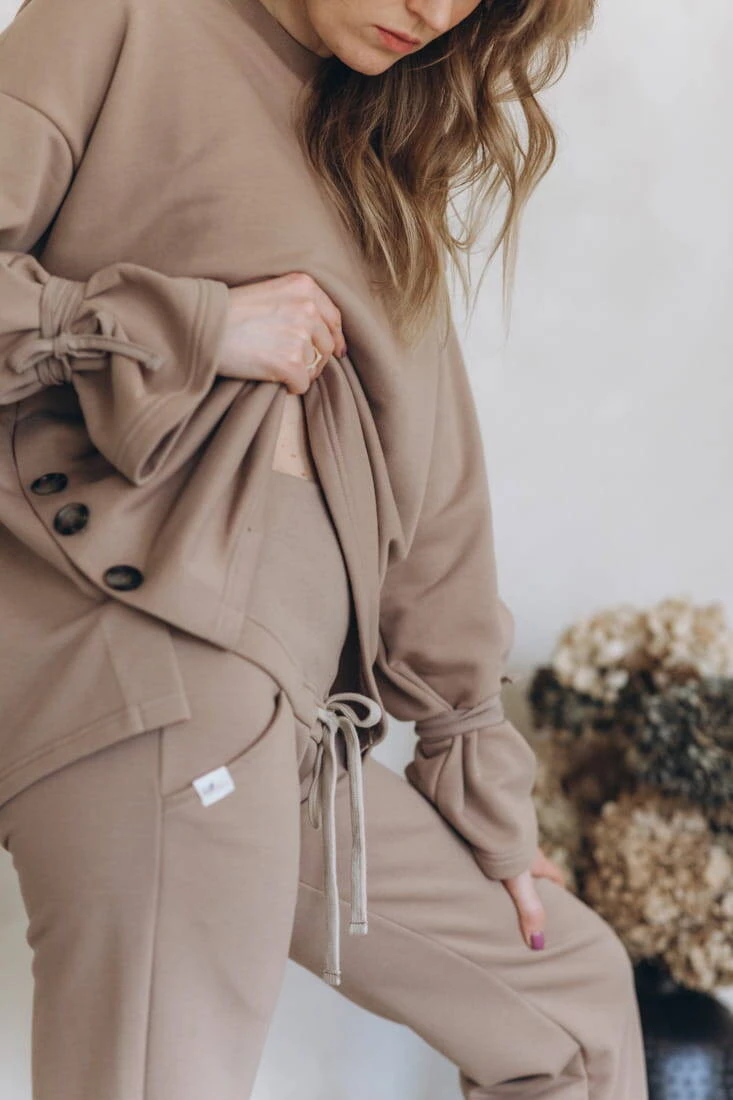 Wszystkie praktyczne spodnie ciążowe można założyć w ciepłe dni z t shirtem lub letnią koszulką. Na zimniejsze wieczory sprawdzą się również z dodatkiem ciepłej bluzy. Możesz nadal wyglądać kobieco i atrakcyjnie gdyż nasze beżowe szerokie spodnie ciążowe z kolekcji Latte na wynos są nie tylko wygodne i dbają o Twój ciążowy brzuszek, ale są również bardzo stylowe. Możesz nosić je aż do czasu porodu i potem podczas karmienia piersią dziecka kiedy ubrania nie uciskają i ciało dochodzi do siebie.