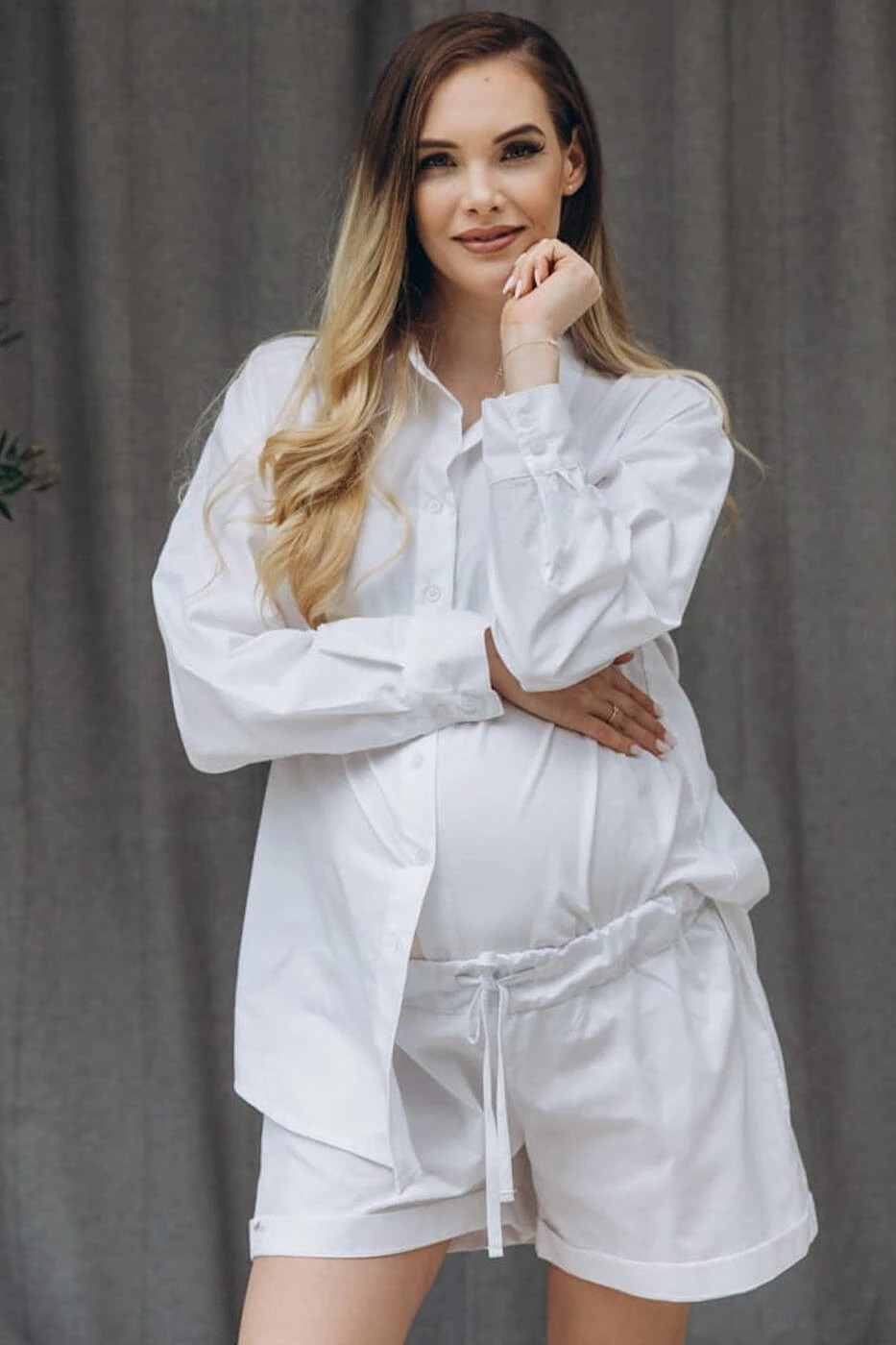 Krótkie spodenki, szorty ciążowe Latte mama Oxford - Biały