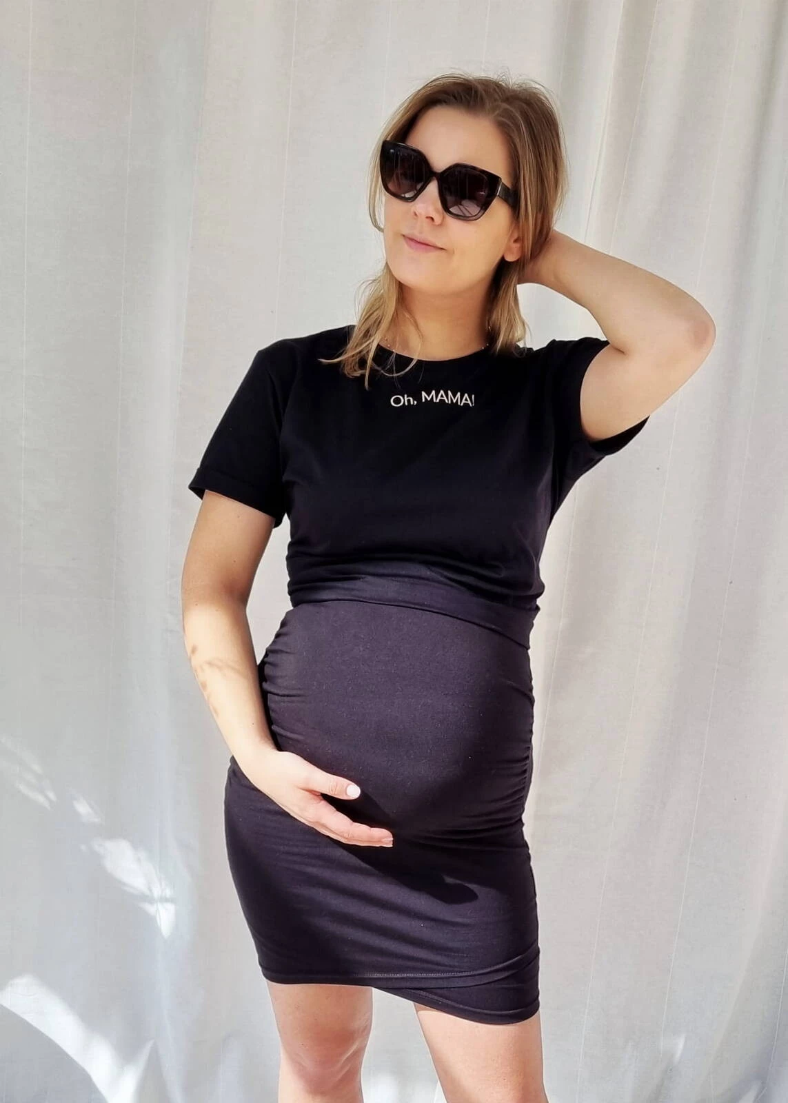 Klasyczna czarna spódniczka ciążowa "Latte Mama" została zaprojektowana z myślą o komforcie i wygodzie przyszłych mam. Wykonana z bardzo elastycznej bawełnianej tkaniny, idealnie dopasowuje się do rosnącego brzuszka, zapewniając komfort przez cały okres ciąży, doskonała również do noszenia po okresie ciążowej przygody. Elastyczny materiał sprawia, że spódnica damska ciążowa nie krępuje ruchów i jest niezwykle wygodna do noszenia na co dzień.