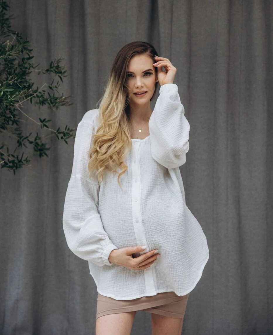 Muślinowa koszulowa bluzka ciążowa i do karmienia Boho - Biała