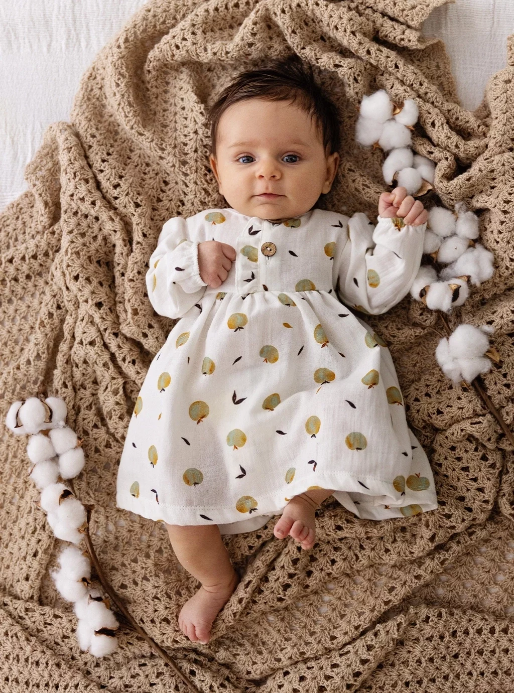 Sukienka niemowlęca z długim rękawem Muslin Apples Makoma