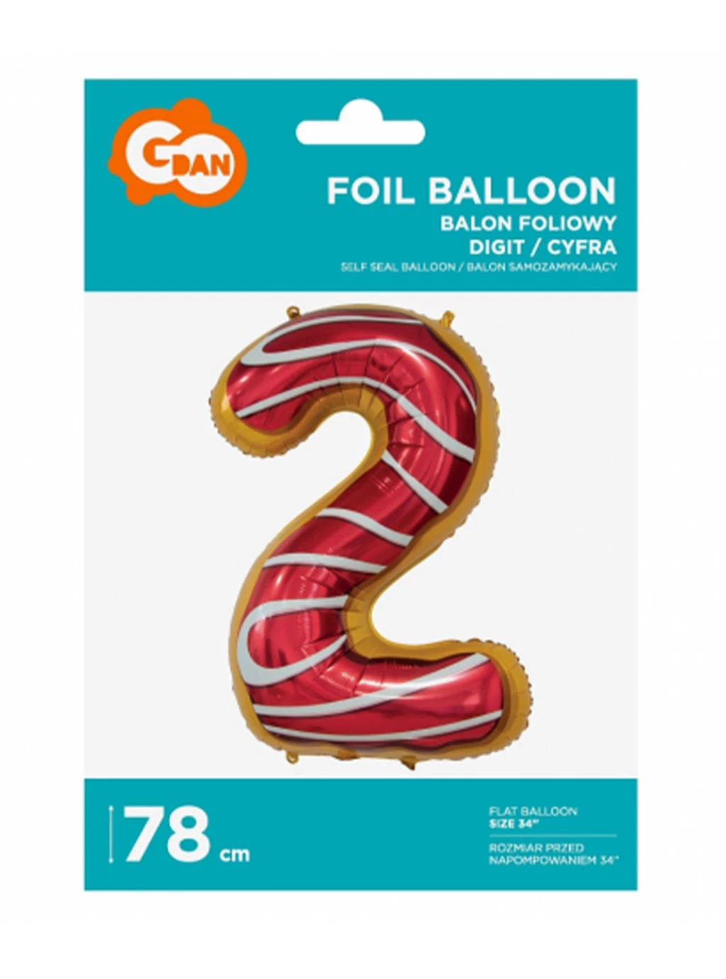 Balon foliowy w kształcie cyfry 2 z nadrukiem ciasteczka z lukrem to przesłodka dekoracja na 2. urodziny Twojego Maleństwa, drugą rocznicę ślubu i wiele innych okazji.