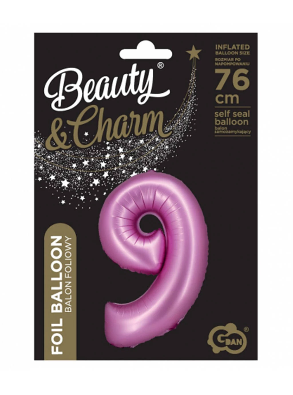 Satynowy różowy balon B&C cyfra "9" -76cm