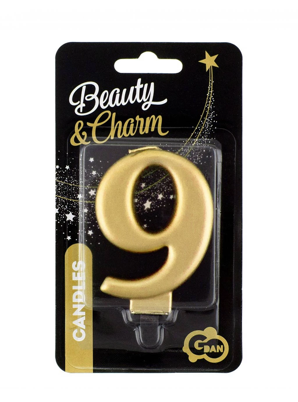 Świeczka urodzinowa cyferka "9" w kolorze Gold metalik