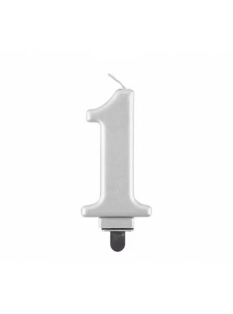 Świeczka urodzinowa cyferka "1" w kolorze Srebrny metalik