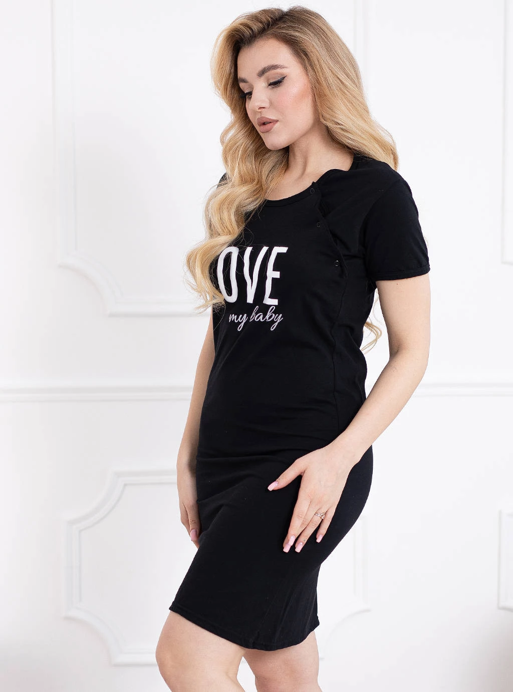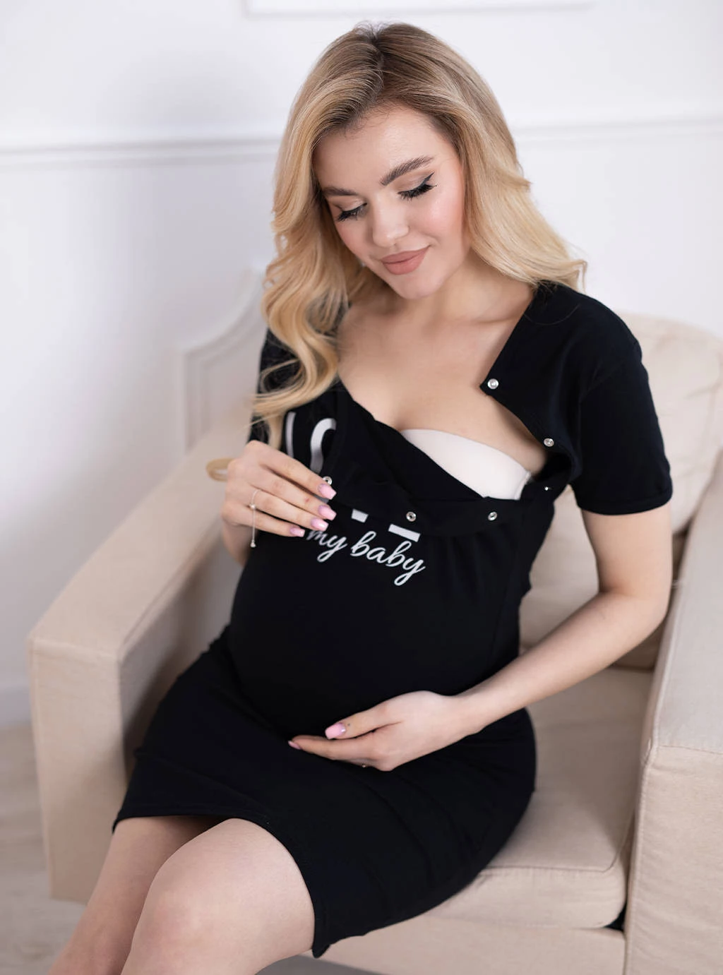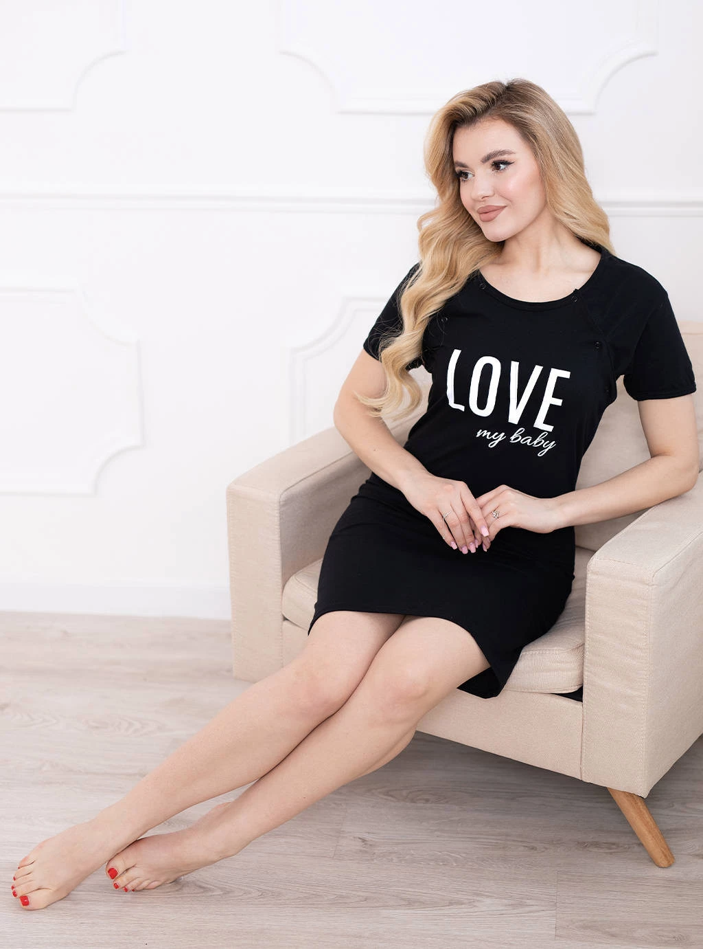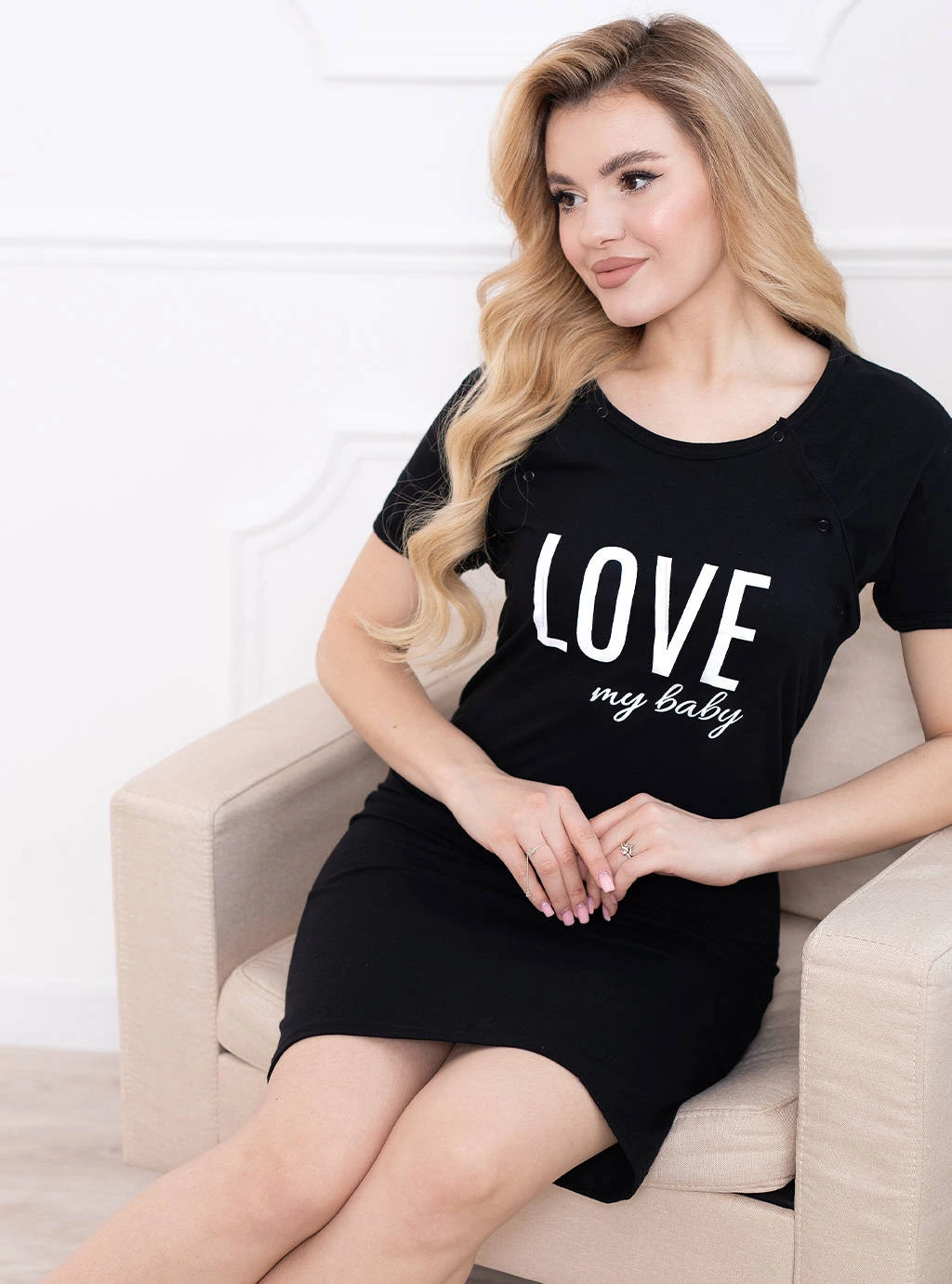 W naszym sklepie internetowym staramy się aby wyprawka była w zasięgu twojej ręki, zarówno artykuły potrzebne do szpitala jaki i koszule do karmienia to produkty najwyższej jakości skompletowane wyjątkowo starannie. Kupując koszulę nocną w naszym sklepie możesz wybrać różne atrakcyjne modele. Love my baby- kolor czarny to idealne rozwiązanie które zapewni Ci wygodę, nie krępujące ruchów.