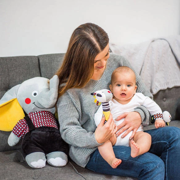 To najlepszy towarzysz zabaw. Różne faktury, kolorowy gryzaczek i wewnętrzny piszczek rozwijają umiejętności poznawcze dziecka.