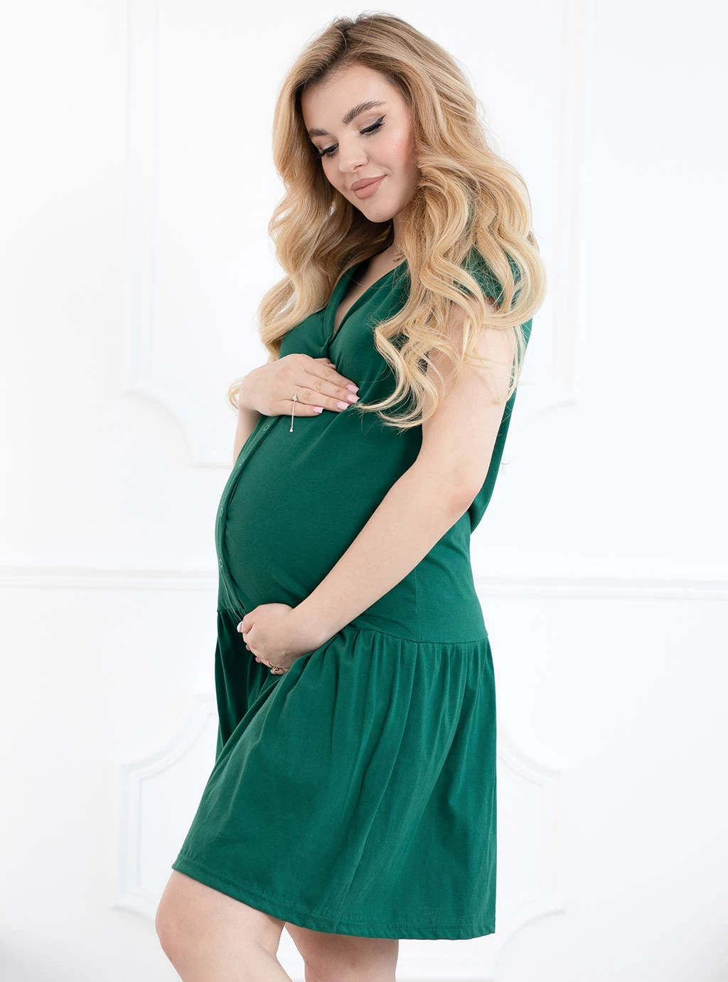 Zielona koszula ciążowa w pięknym odcieniu zieleni spełni wszystkie oczekiwania jakie ma przyszła mama. Ubrania ciążowe w kolorze butelkowa zieleń to must have każdej z kobiet nie zależnie czy jest w ciąży. Koszula ciążowa i do karmienia rozpinana na środku w tym odcieniu to stylowe rozwiązanie które z dobrym skutkiem zastąpi letnią sukienkę.