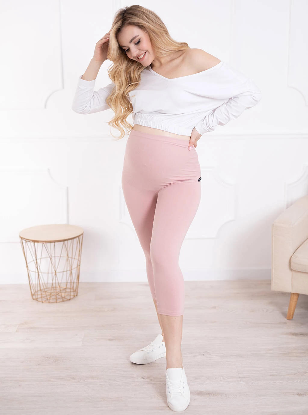 Do zestawu ciążowego będącego niezbędnym wyposażeniem każdej mamy, w którego skład wchodzą: bluzki ciążowe, majtki ciążowe oraz biustonosz do karmienia , warto dołączyć legginsy ciążowe 3/4 w kolorze brudny róż.