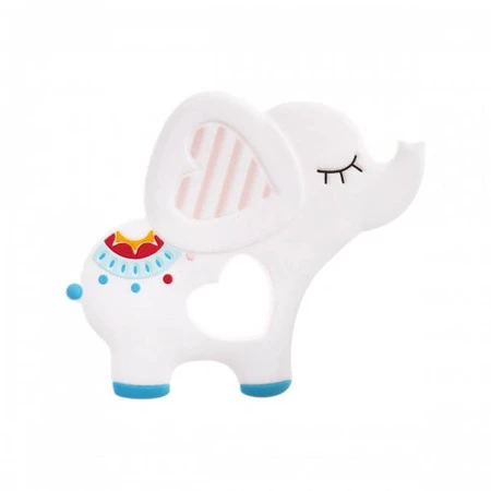 Praktyczny gryzak silikonowy, wyróżnia się ciekawym kształtem i przyjemną kolorystyką. Dzięki temu stymuluje małą motorykę dziecka. Idealnie sprawdzi się w okresie ząbkowania, gdy dziąsła bardzo swędzą i dziecko ma silną potrzebę gryzienia. Wykonany z miękkiego, elastycznego silikonu, który dopasowuje się do dziąseł malucha. Jest lekki i poręczny, dzięki czemu maluszkowi nie sprawia problemu utrzymanie go w małych rączkach.