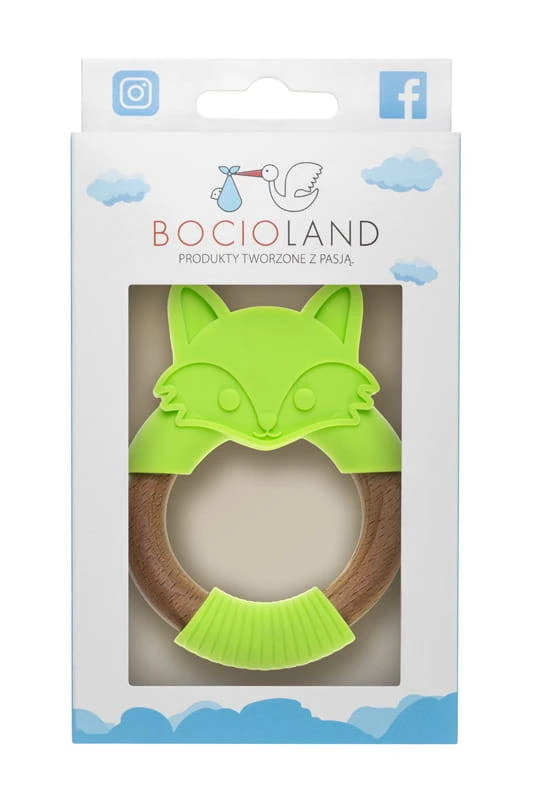 BOCIOLAND Gryzak drewniano-silikonowy Lisek – zielony