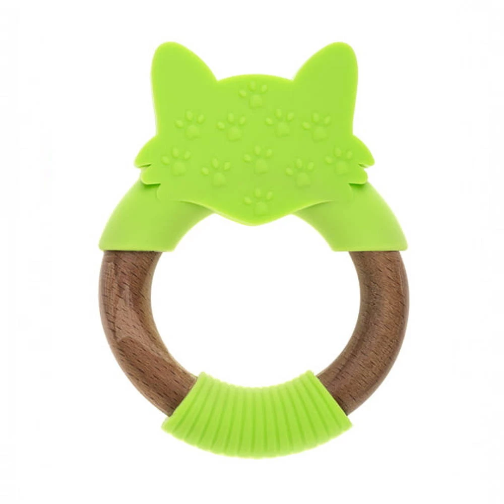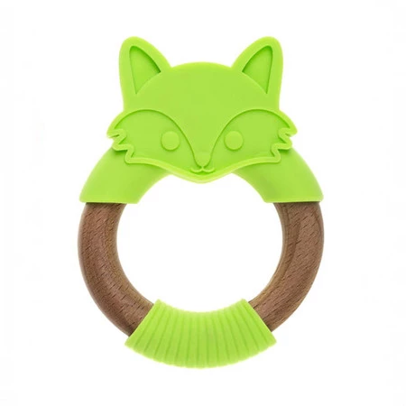 Bocioland Gryzak Drewniany Z Silikonem Lisek - zielony