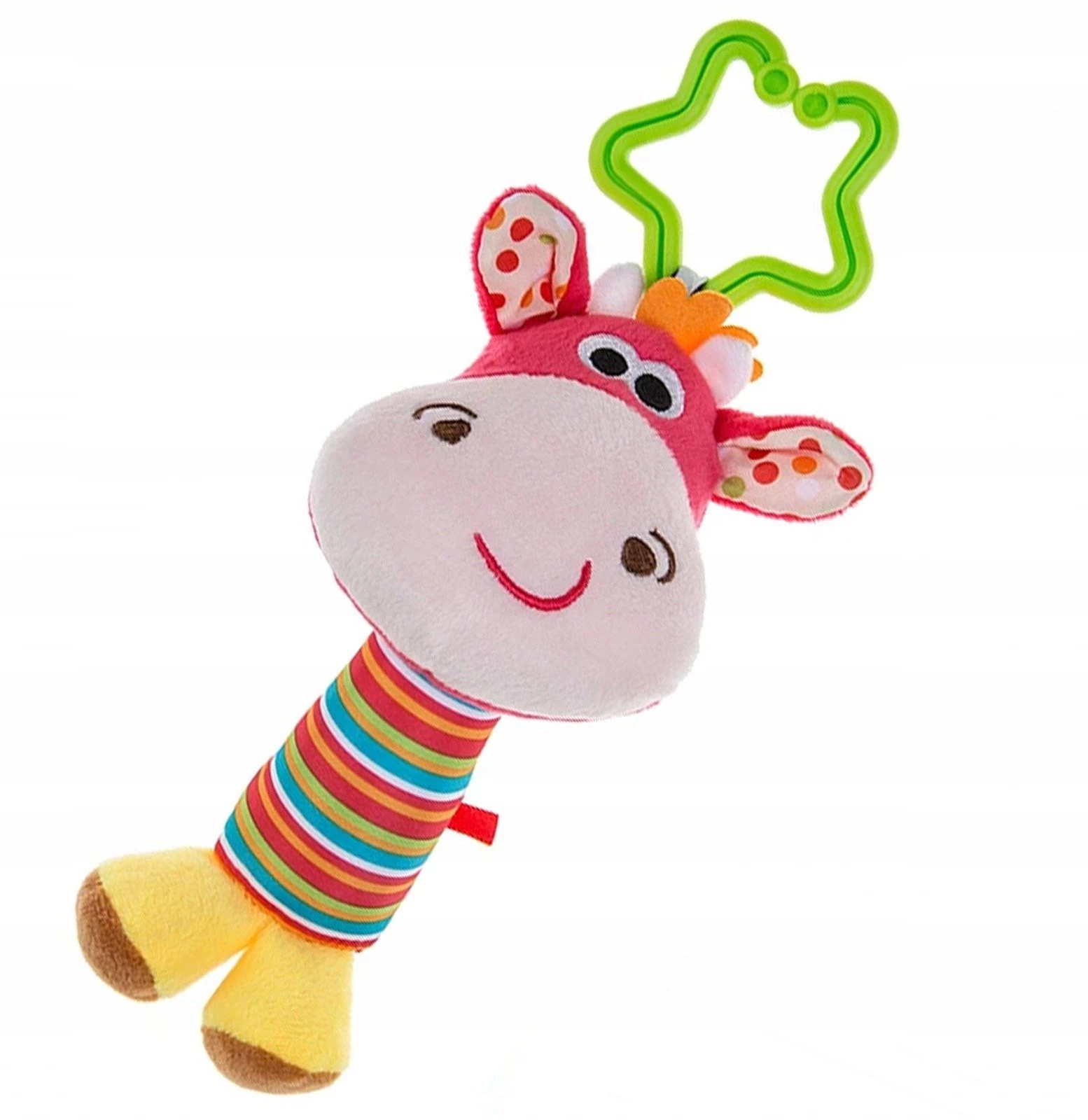 Pluszowa zawieszka Krówka bez wątpienia przykuje uwagę każdego dziecka. Maskotka wyposażona jest w uniwersalny, łatwy do zaczepienia na wszelkich powierzchniach plastikowy uchwyt-haczyk, dzięki czemu można ją zamocować w dowolnym miejscu w domu oraz w podróży. Jego kolorowe i ciekawe kształty przyciągają uwagę Twojej pociechy. Wykonane są z delikatnego materiału, który powoduje, że dziecko nie chce się z nimi rozstać.