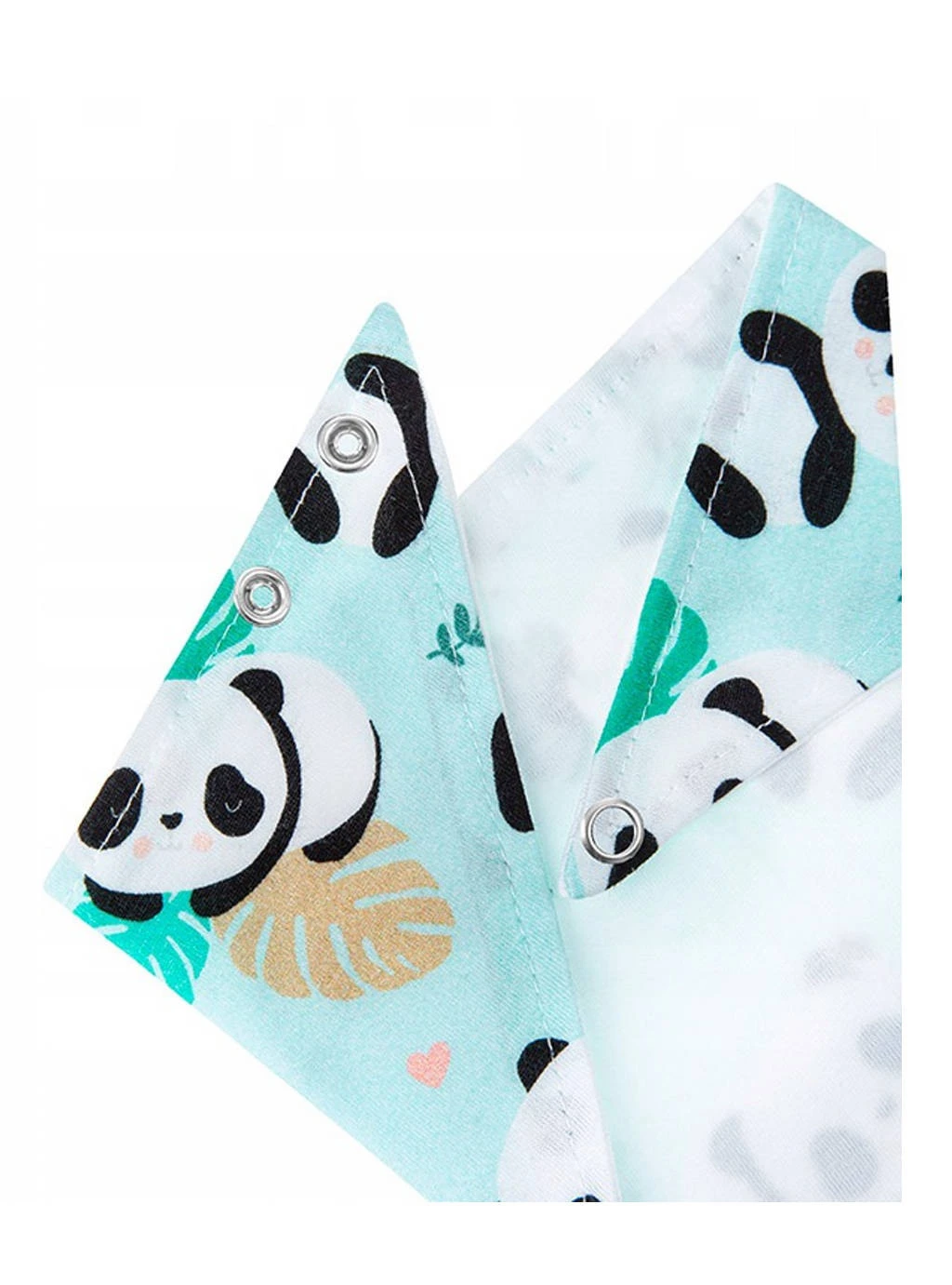 Śliniak/ apaszka/bandana posiada 2 warstwy chroniące ubranie. Śliniak z kolorowymi dziecięcymi nadrukami w pandy to stylowy element ubioru dziecka, osłaniając szyję może być używane zarówno jako apaszka. Możliwość wydłużenia długości lub możliwość skrócenia dzięki napom pozwala nosić tą apaszkę nawet do wieku przedszkolnego. Modna kolorystyka zebrana w sklepie Formommy i przede wszystkim szeroki wybór kolorystyki pasuje zarówno rodzicom chłopców jak również dziewczynek.