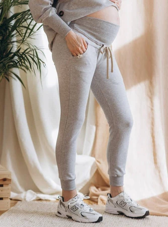 Spodnie ciążowe joggersy z podwyższonym pasem Never Walk Alone - Szary melange