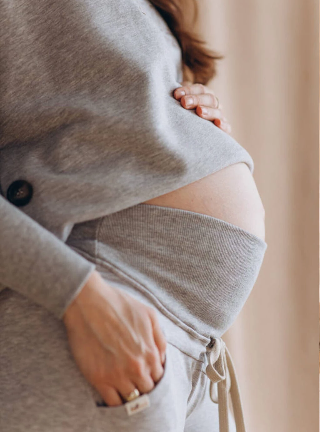 A dzięki ścigaczowi ze sznurkiem te dresowe spodnie ciążowe po ciąży możesz dalej nosić, jako zwykłe joggersy!