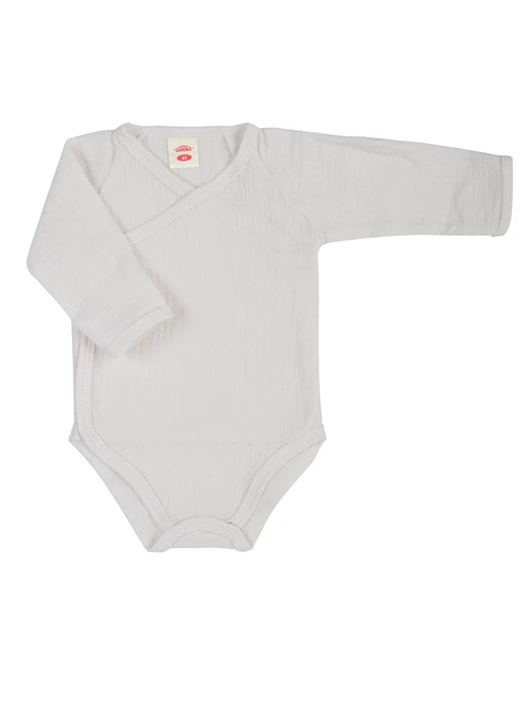 Dziecięce body bawełniane wykonane z muślinu jest miękkie i delikatnie otula oraz chroni małe ciałko przed zmarznięciem i przegrzaniem