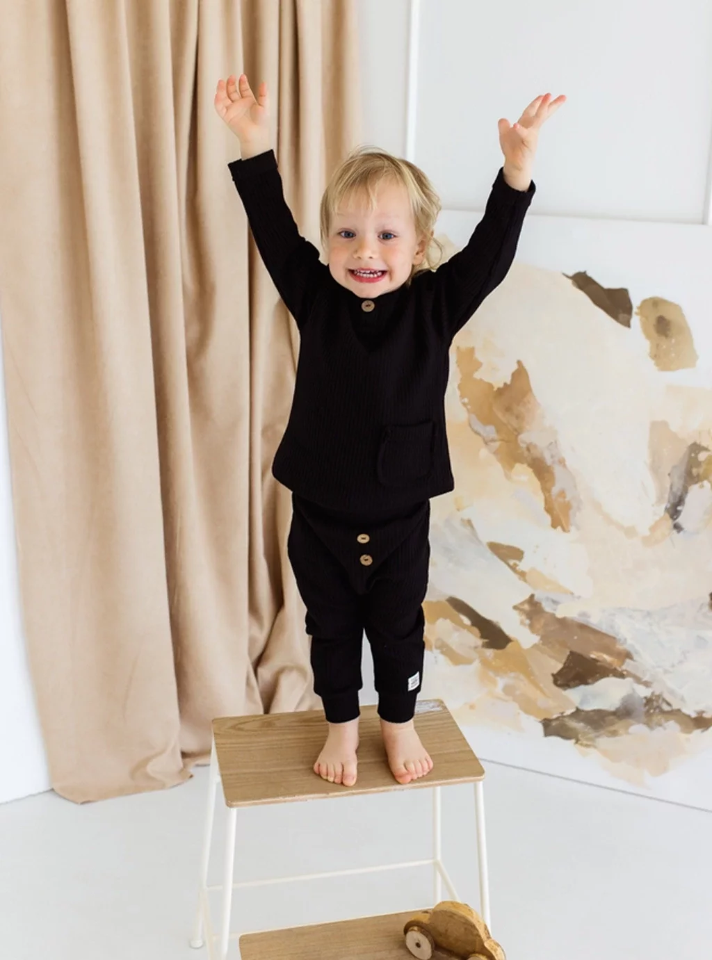 Spodnie niemowlęce dresowe Makoma Natural Waffel -Black
