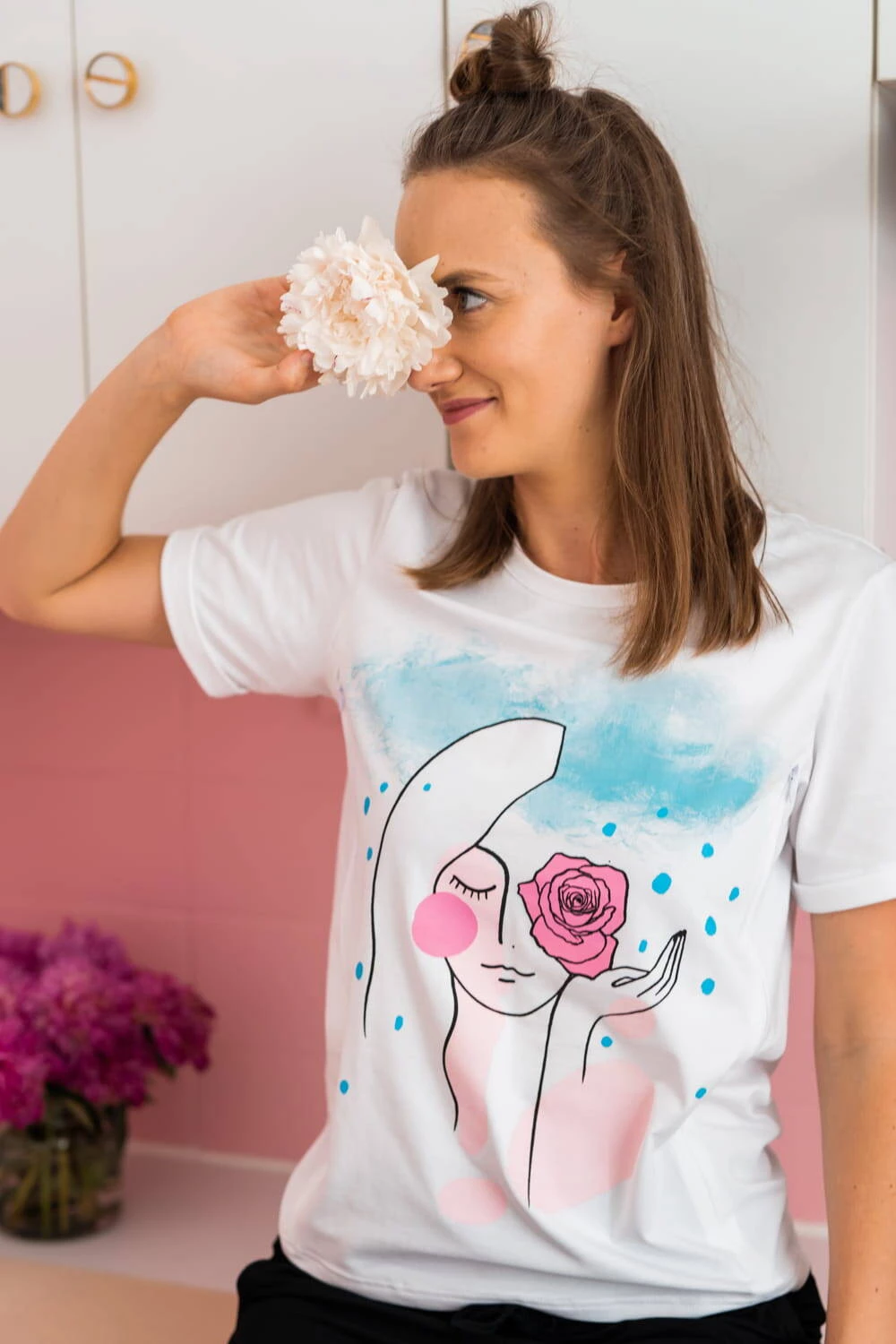 Na bluzce znajduje się piękna grafika stworzona specjalnie dla mam przez Sonię Sobieraj-Brzeźniak. Jej prace inspirowane macierzyństwem dodają bluzce unikalnego charakteru i wyjątkowego uroku. Co czujesz, kiedy na nią patrzysz?