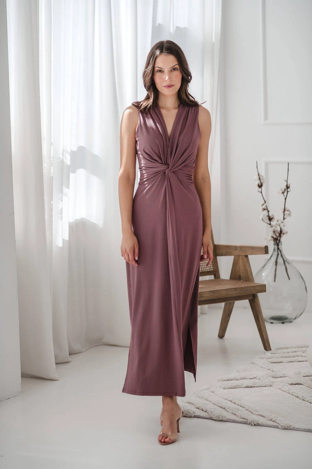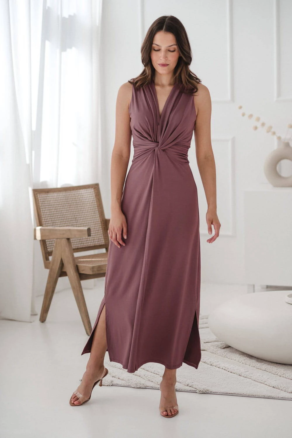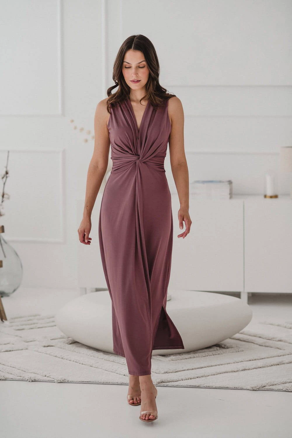 Długa sukienka do karmienia piersią z ozdobnym dekoltem. Sukienka ciążowa i do karmienia Loop posiada pasek wiązany z tyłu, który dostosowuje się do zmieniających się kształtów sylwetki. Idealna na różne okazje, od imprez rodzinnych po sesje ciążowe. Wykonana z wiskozowej dzianiny, przyjemnej dla skóry. Projektowana zgodnie z zasadami slow fashion, zapewniając wyjątkową trwałość.