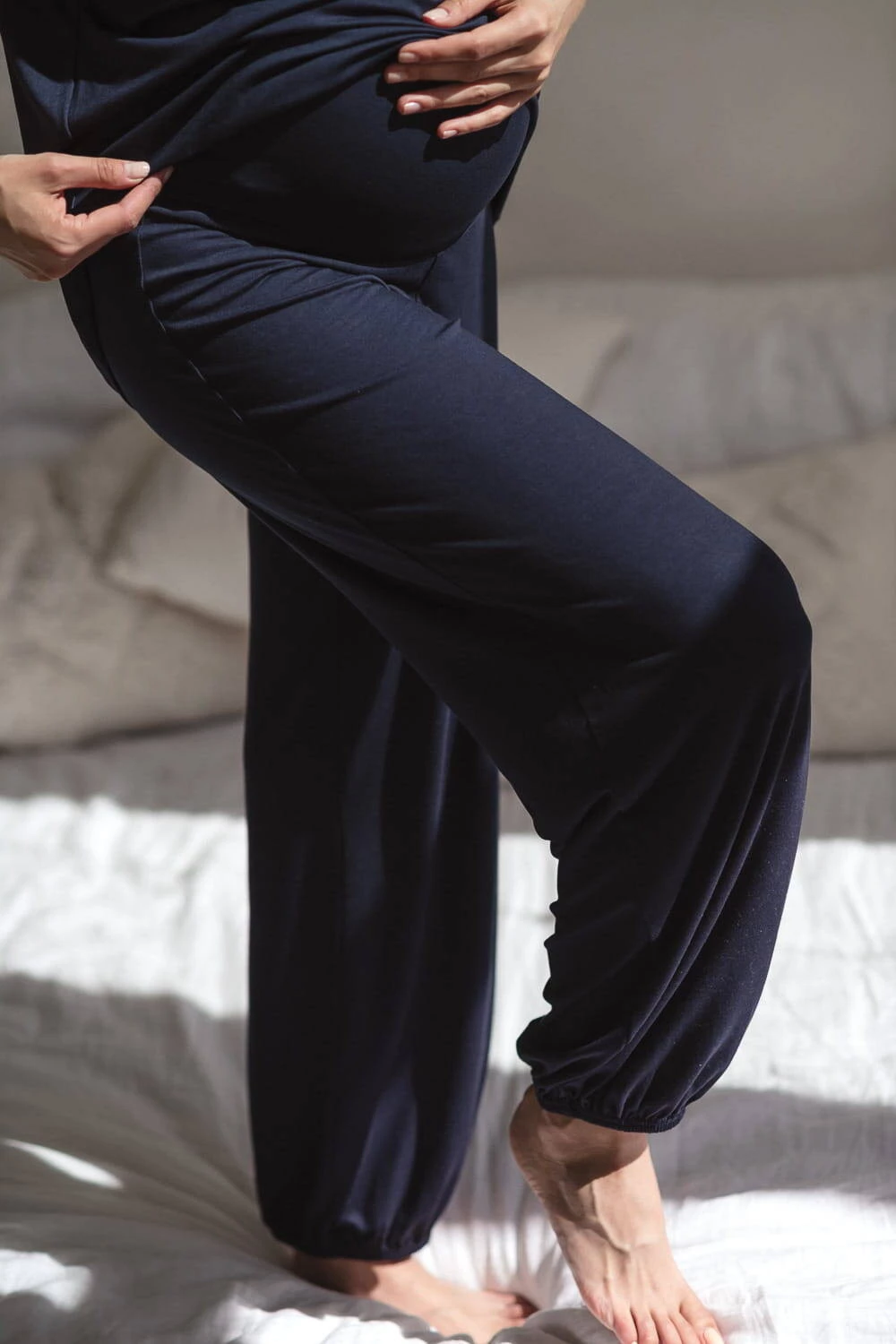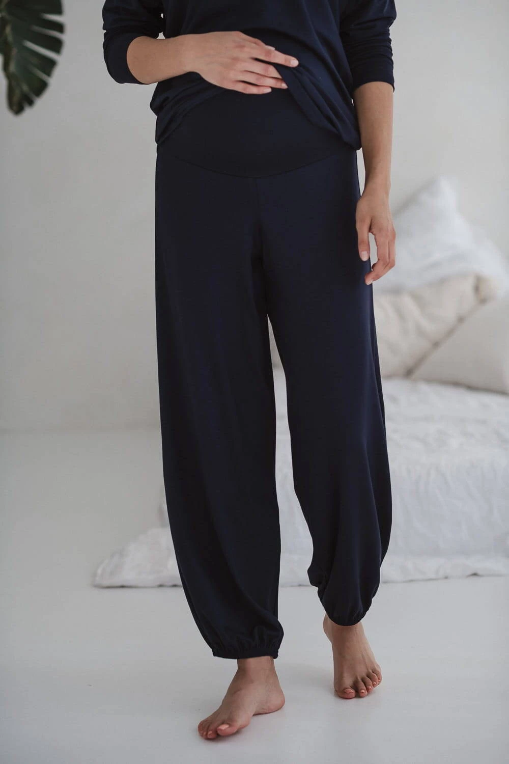 Bambusowe spodnie od piżamy ciążowej Moon długie granatowe