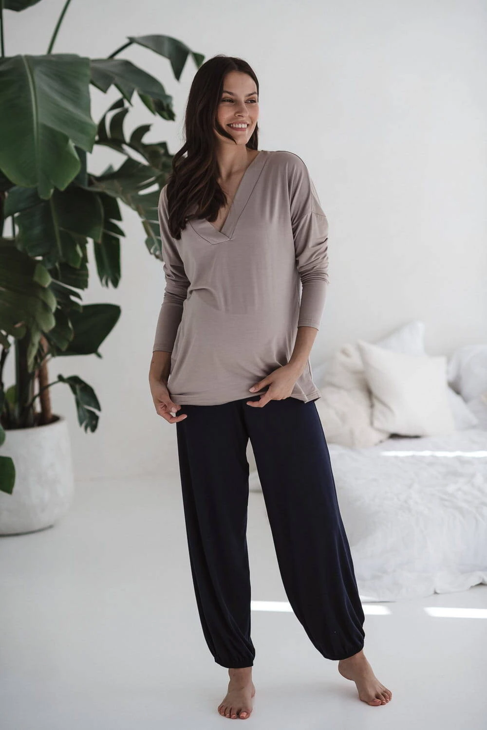 Długie, bambusowe spodnie od piżamy ciążowej Moon