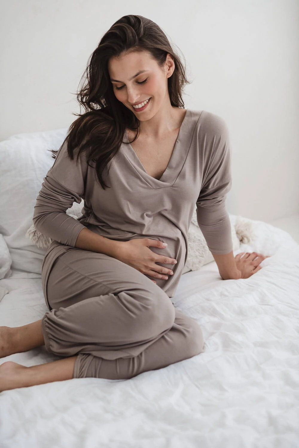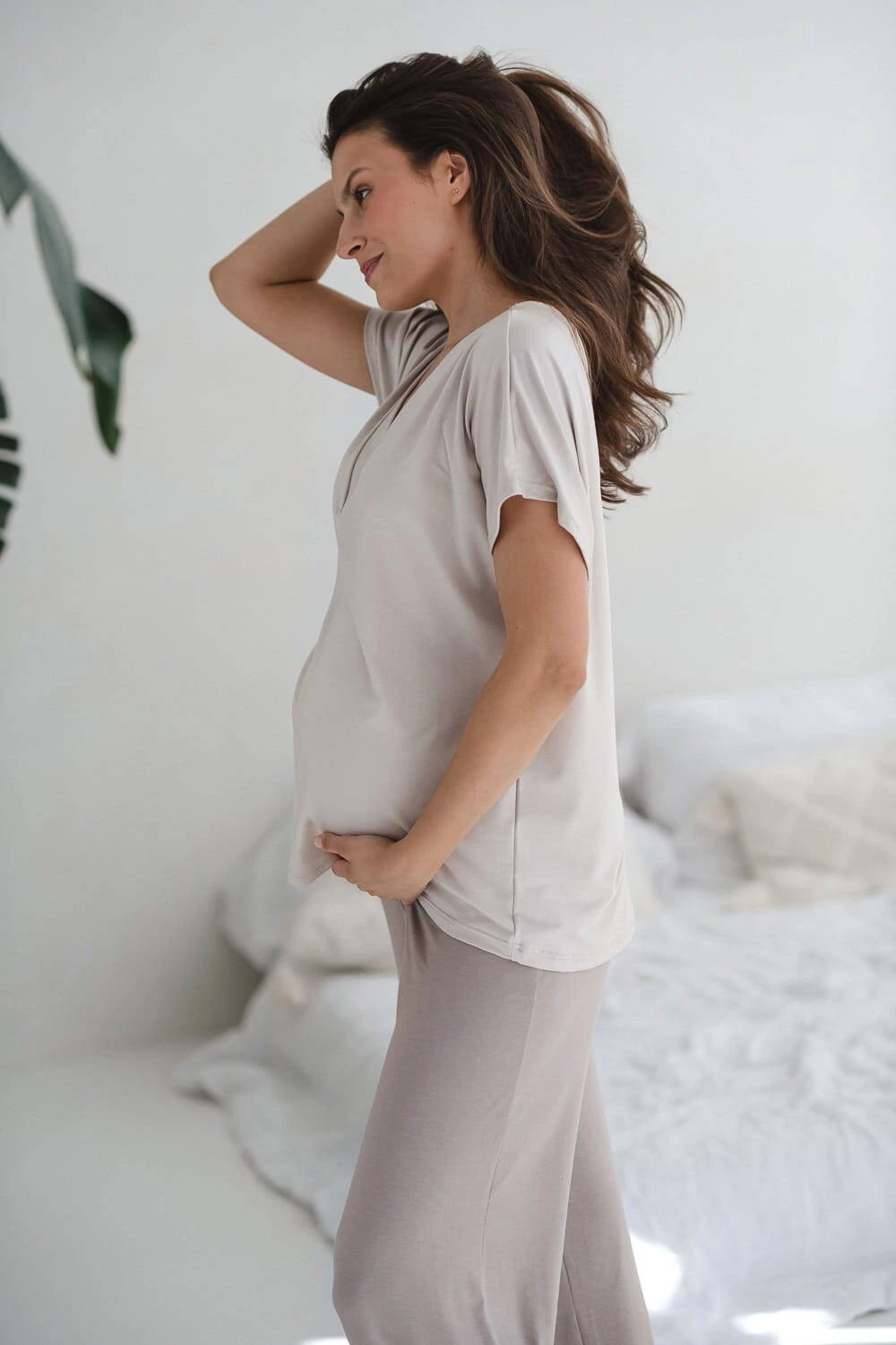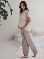 Bambusowe spodnie od piżamy ciążowej Moon długie beżowe