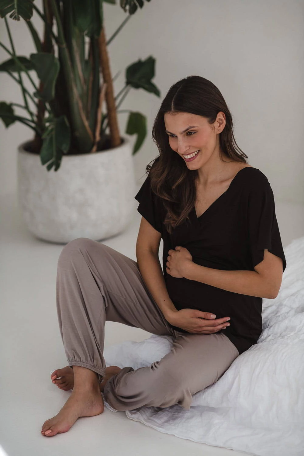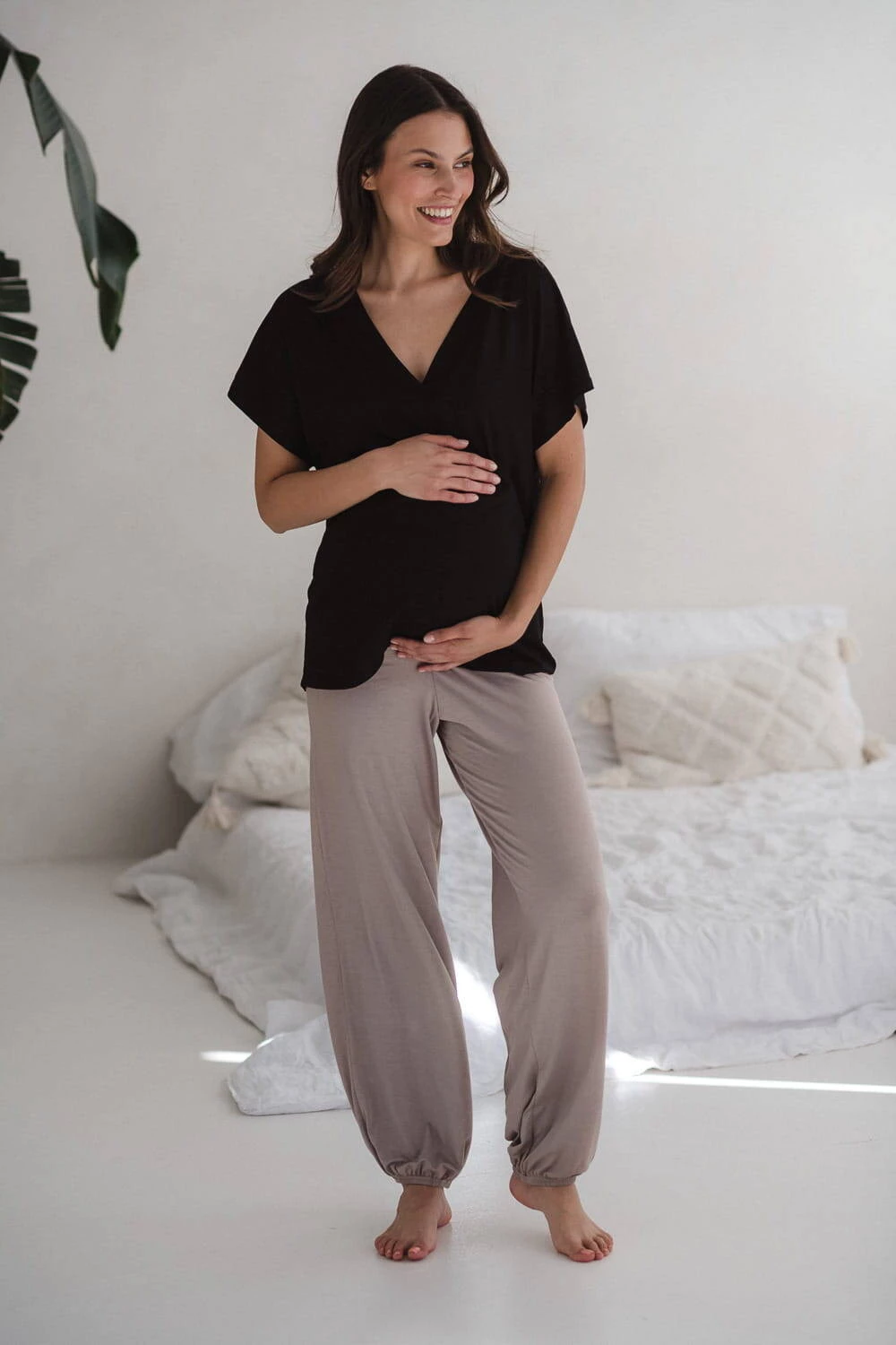 Długie, bambusowe spodnie od piżamy ciążowej Moon