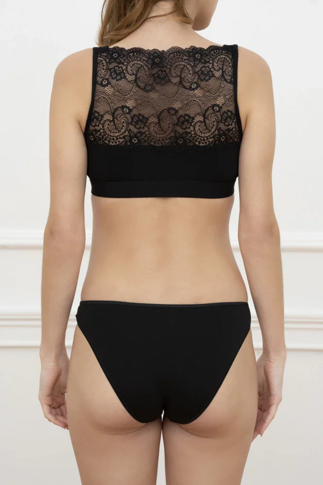 • Biustonosz do karmienia ma ozdobiony koronką tył