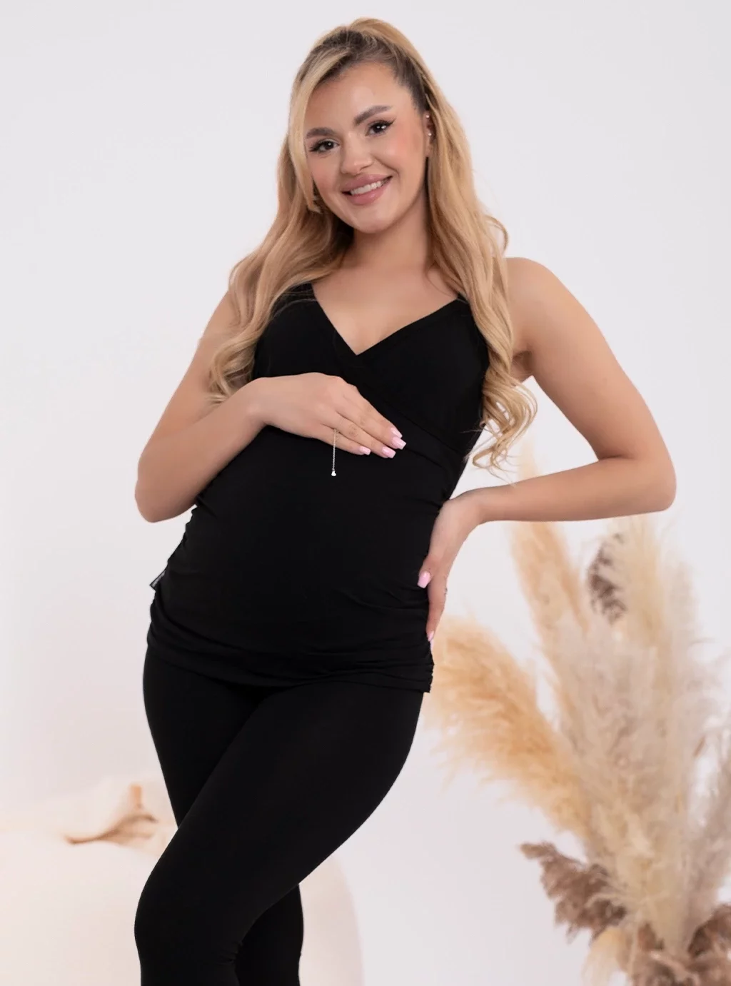 Kopertowa bluzka ciążowa i do karmienia ramiączko Formommy Sandy - Czarna