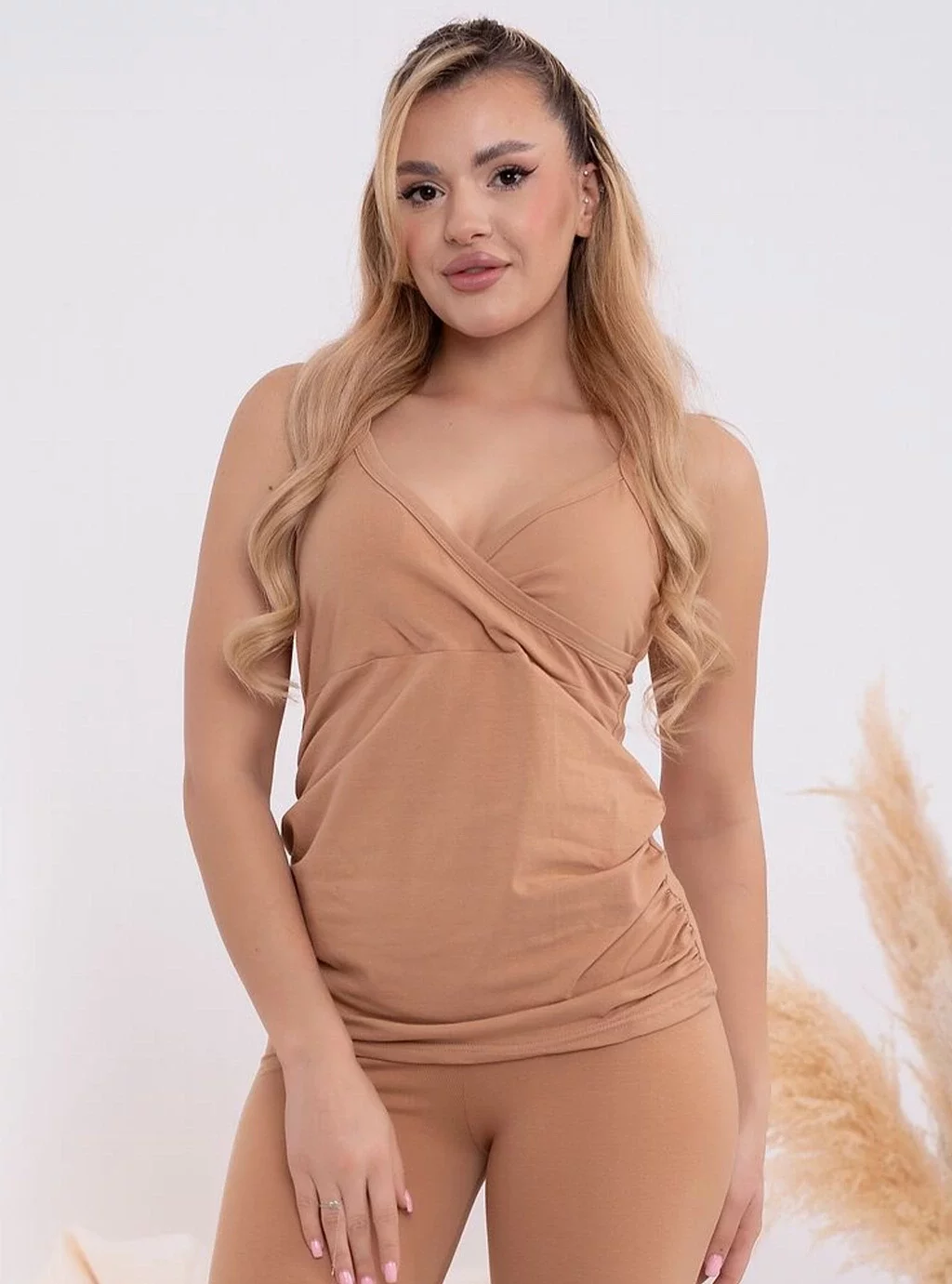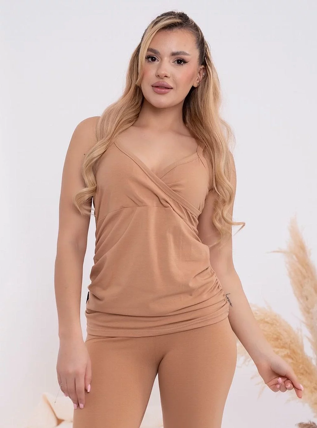 Kopertowa bluzka ciążowa i do karmienia ramiączko Formommy Sandy - Cappuccino