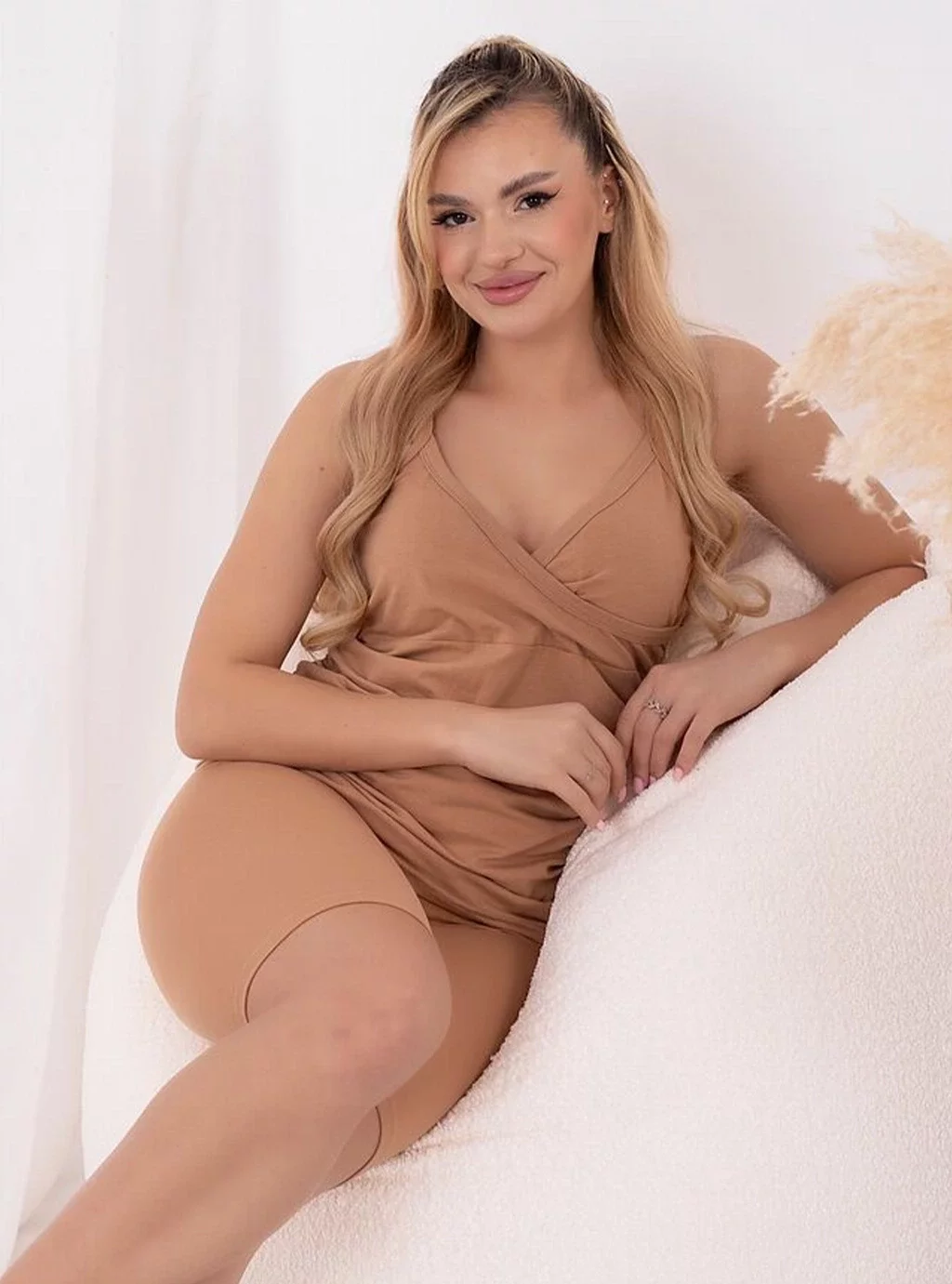Bluzka Sandy ciążowa i do karmienia na ramiączkach w kolorze cappuccino to doskonały wybór dla każdej mamy, która ceni sobie wygodę, funkcjonalność i styl. To must-have w szafie każdej kobiety oczekującej dziecka oraz karmiącej piersią, gwarantujący komfort i elegancję w jednym.