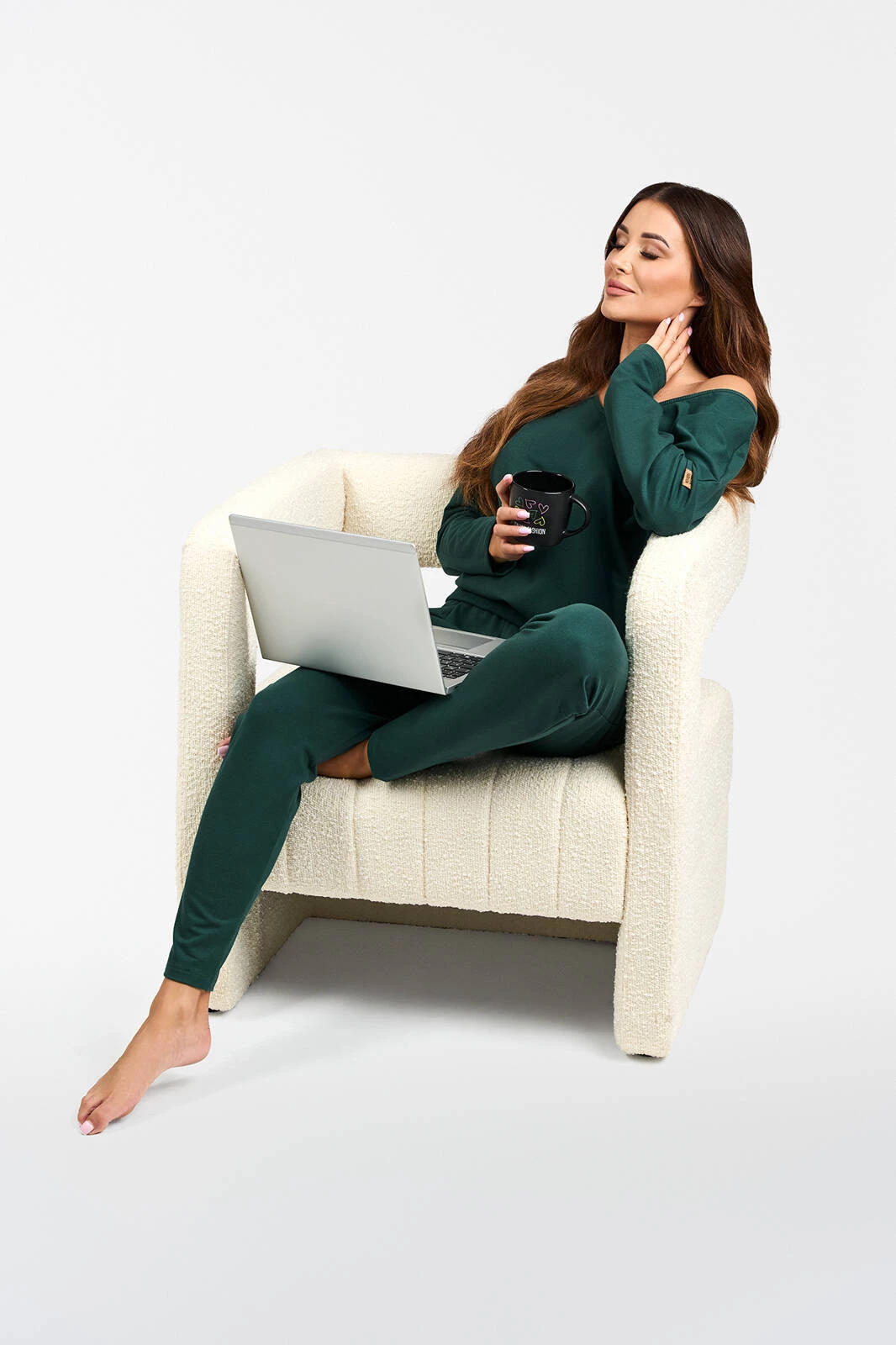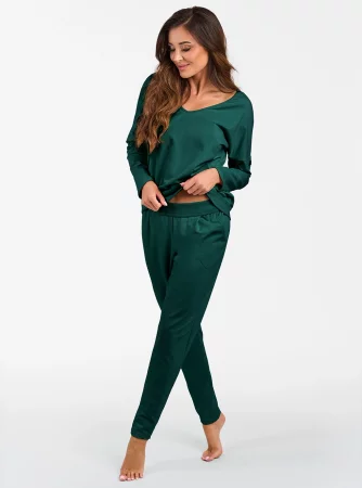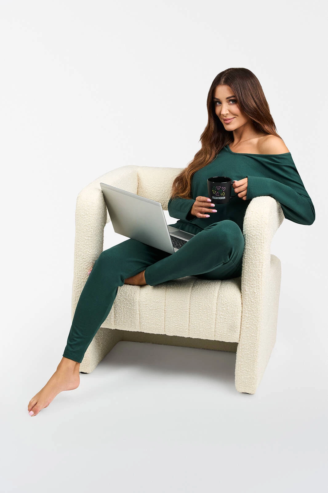 Komplet dresowy dwuczęściowy dres damski Karina długi rękaw długie spodnie- Butelkowa zieleń